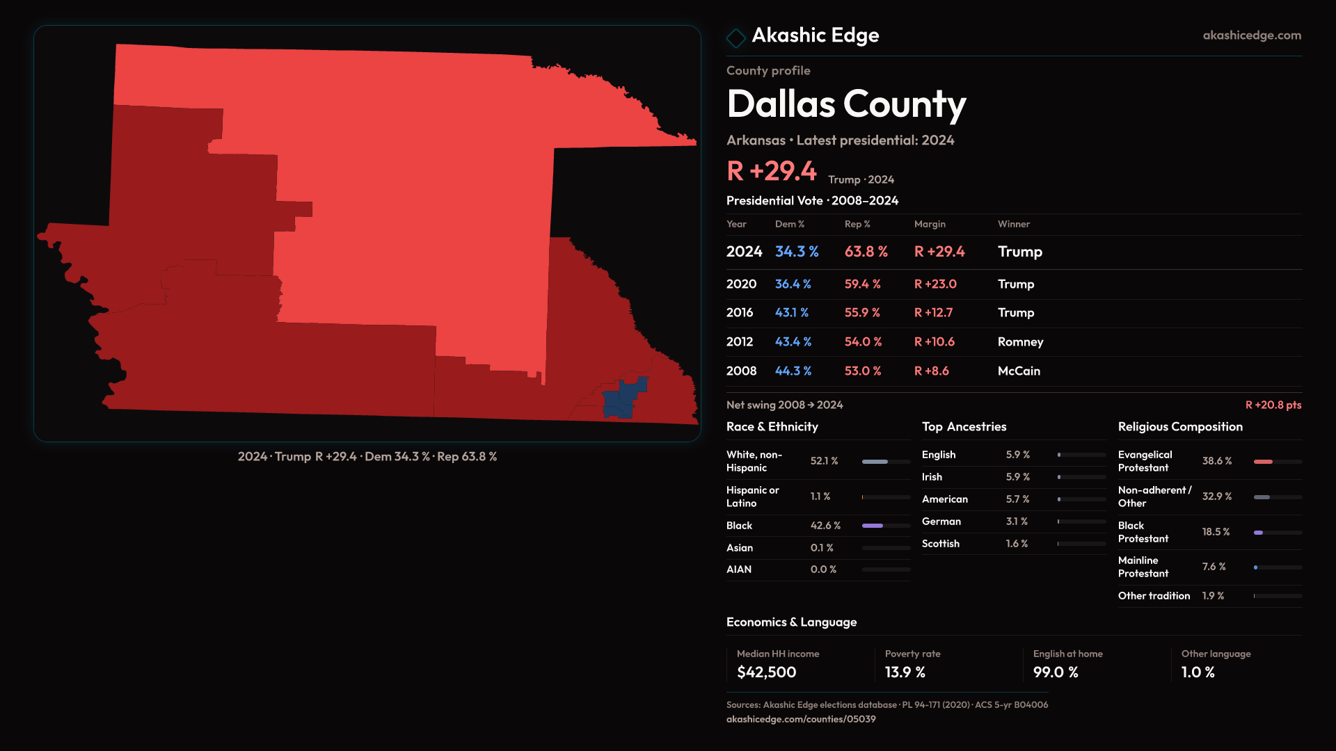 Shifted 6.4pp toward Republicans in 2024 — 40 presidential elections on record