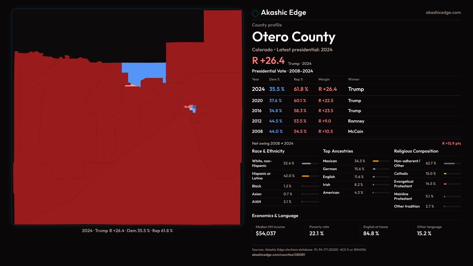 Safe Republican — shifted 3.9pp toward Republicans in 2024 — 34 presidential elections on record