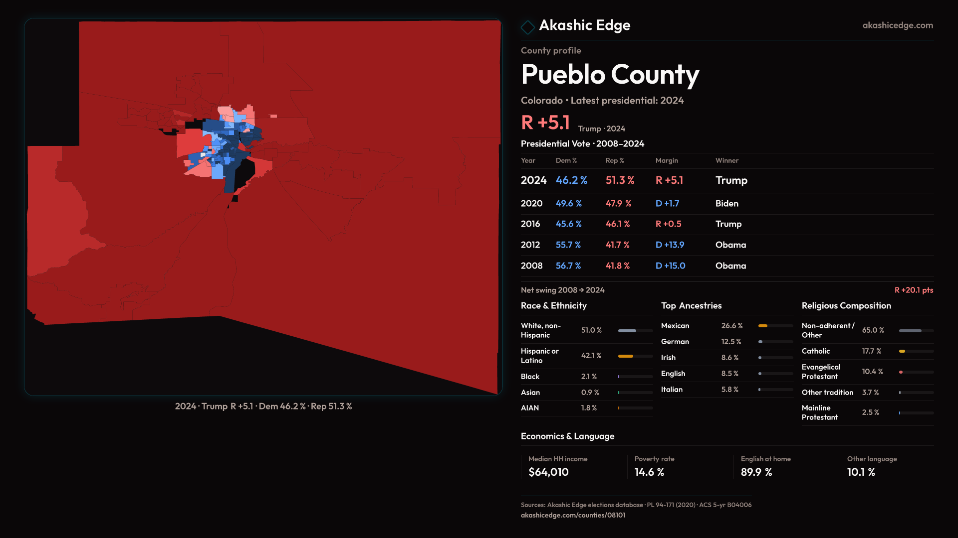 Leans Republican — shifted 6.8pp toward Republicans in 2024 — 37 presidential elections on record