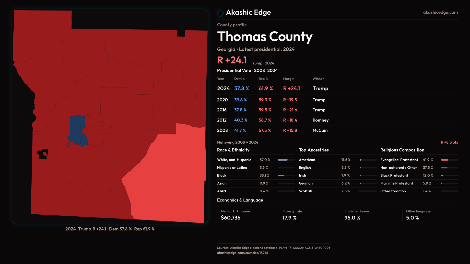 Safe Republican — shifted 4.6pp toward Republicans in 2024 — 40 presidential elections on record