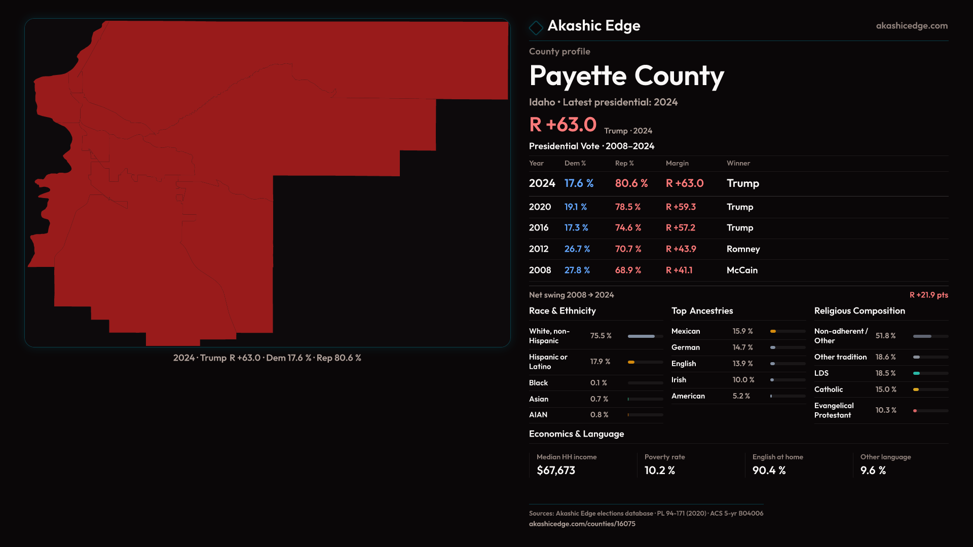 Safe Republican — shifted 3.7pp toward Republicans in 2024 — 27 presidential elections on record