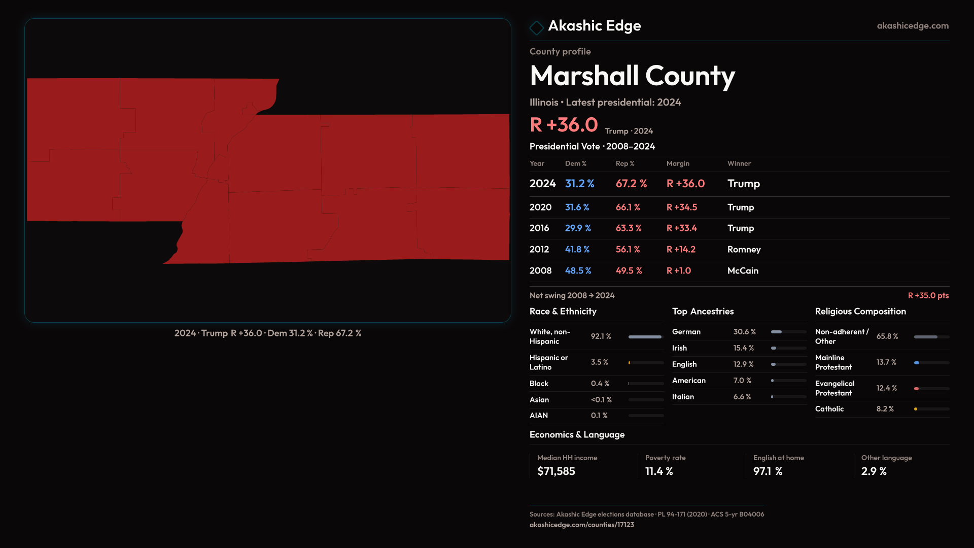 Presidential margin · 2008 → 2024