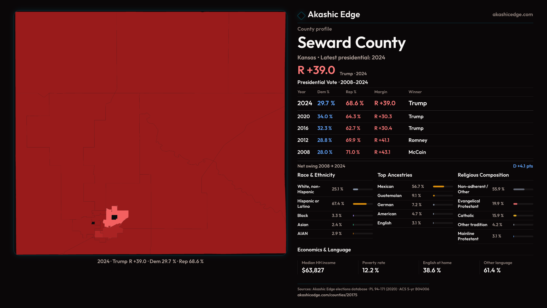 Shifted 8.7pp toward Republicans in 2024 — 35 presidential elections on record