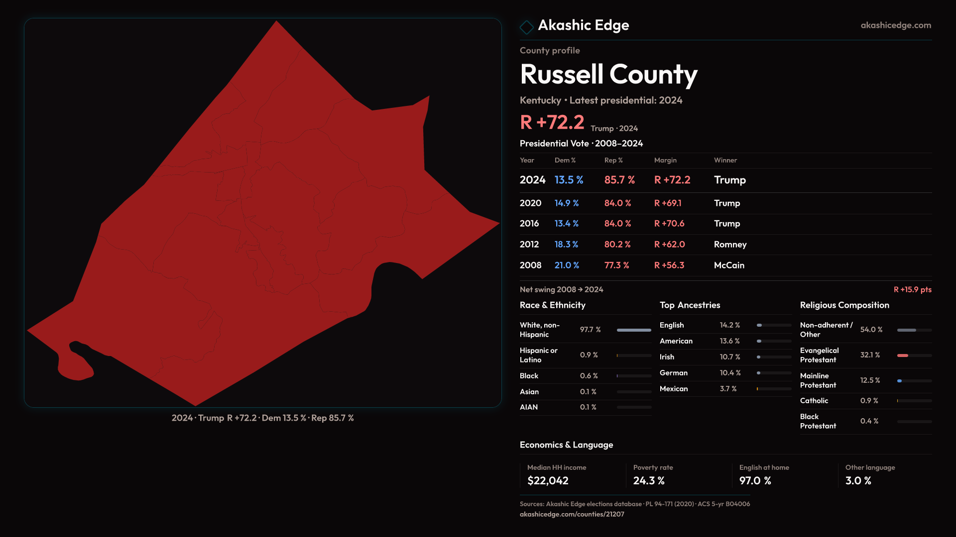 Shifted 3.1pp toward Republicans in 2024 — 40 presidential elections on record