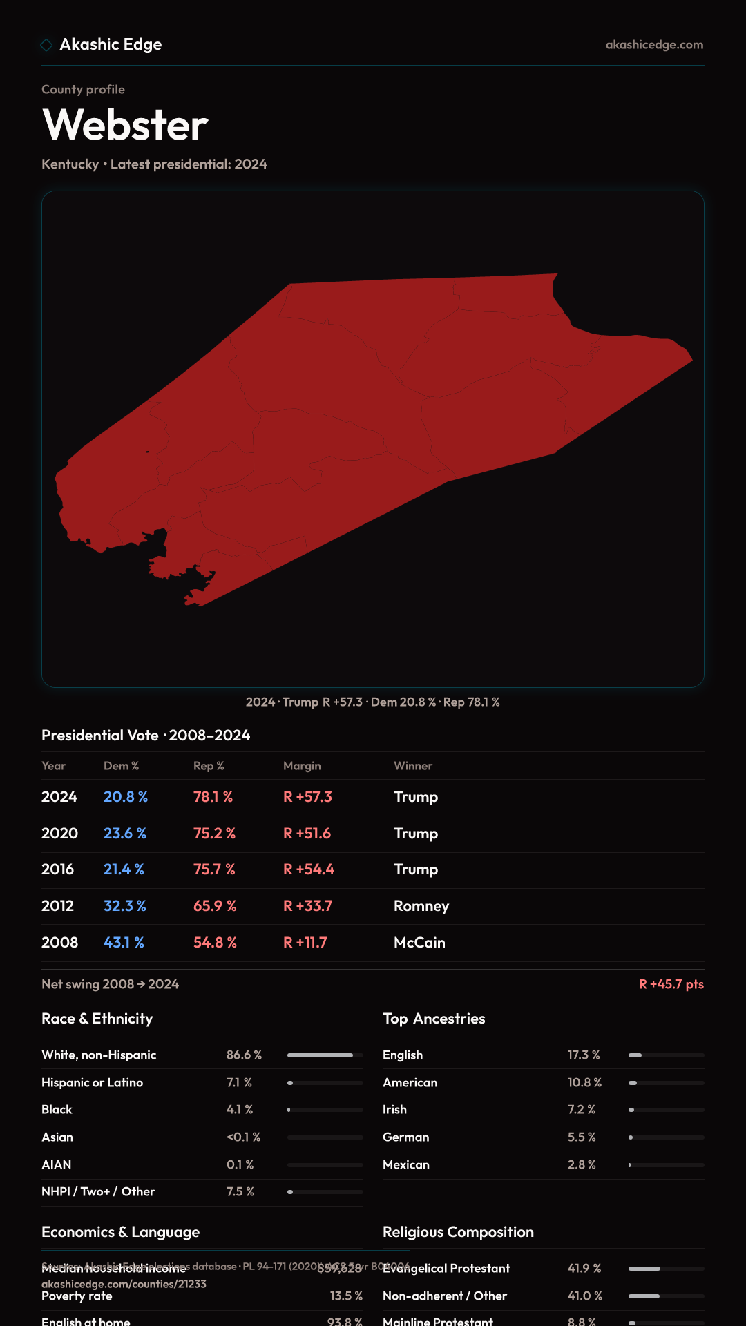 Shifted 5.7pp toward Republicans in 2024 — 40 presidential elections on record