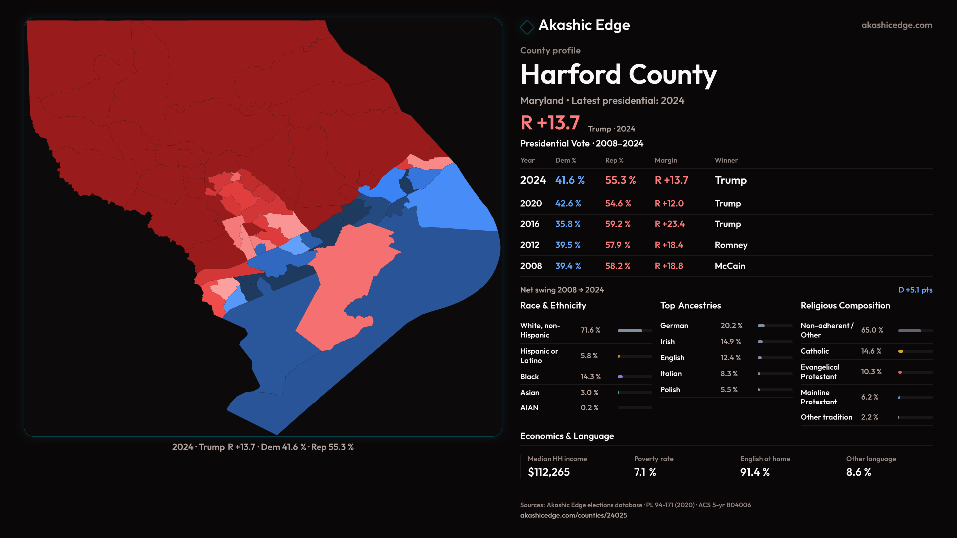 Presidential margin · 2008 → 2024