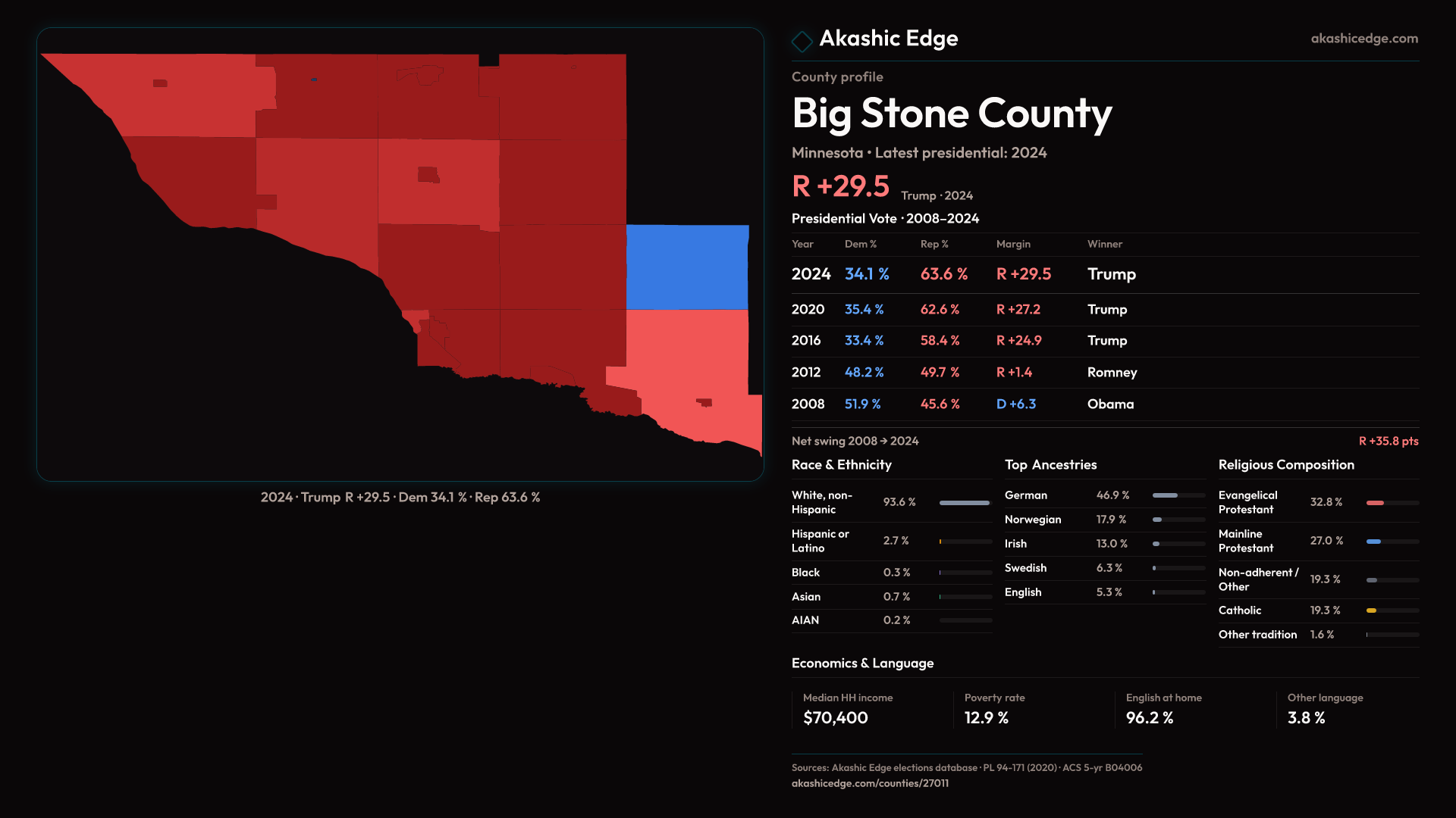 Presidential margin · 2008 → 2024