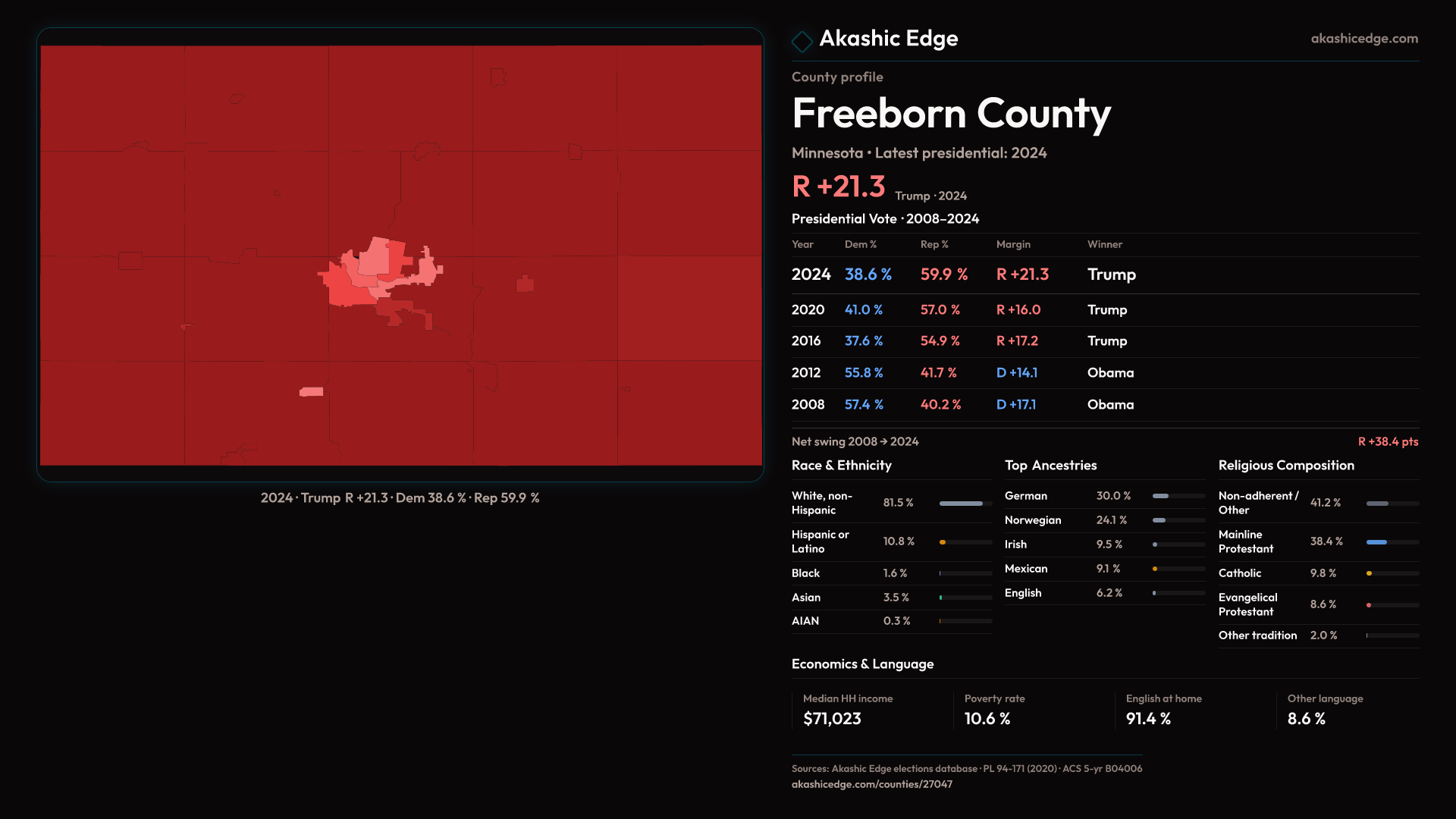 Safe Republican — shifted 5.3pp toward Republicans in 2024 — 40 presidential elections on record