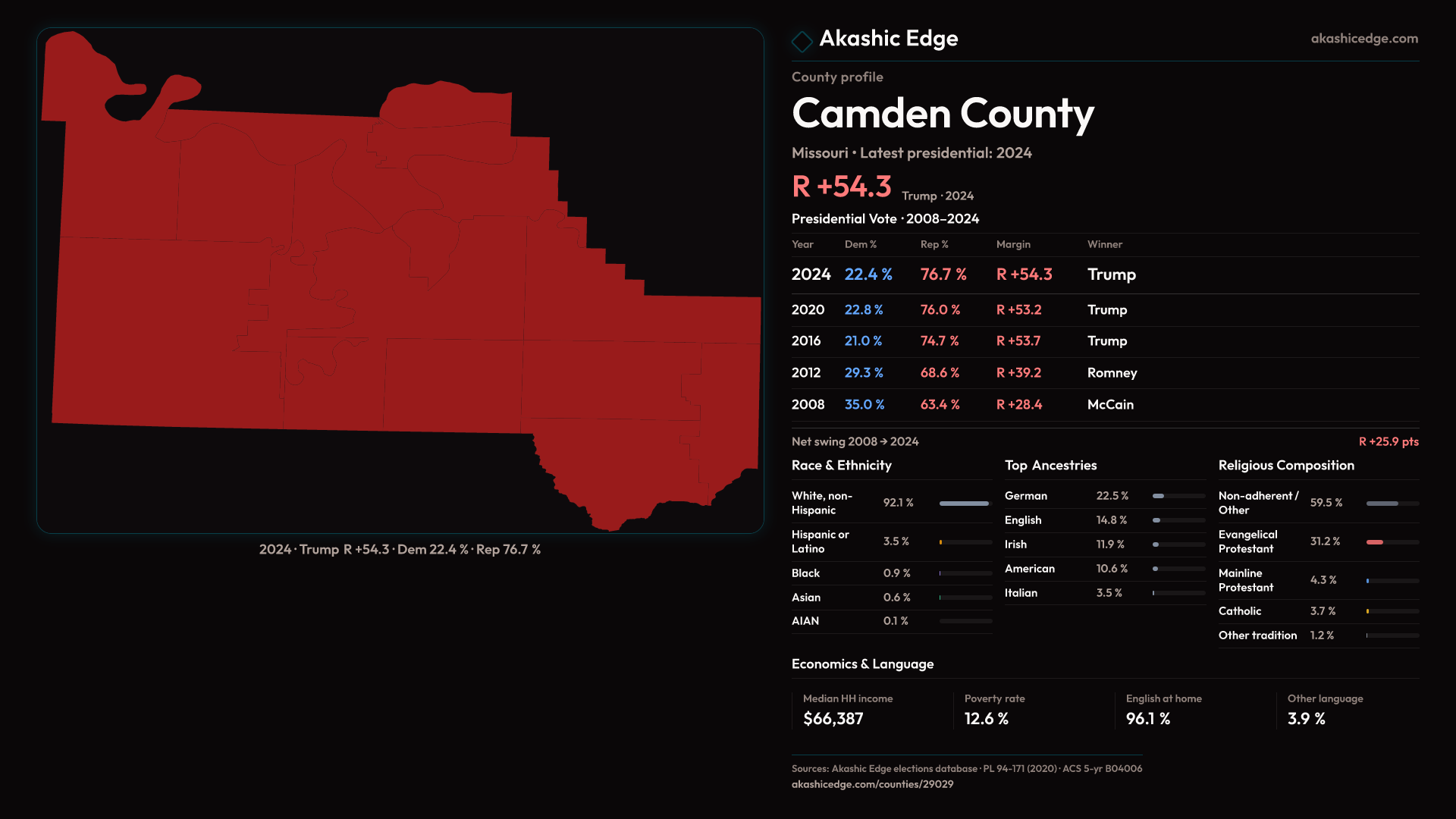 Presidential margin · 2008 → 2024