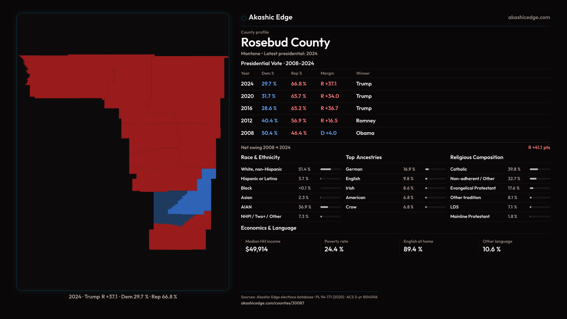 Safe Republican — shifted 3.1pp toward Republicans in 2024 — 31 presidential elections on record