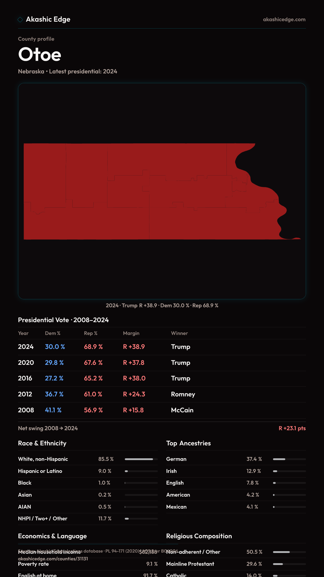 Presidential margin · 2008 → 2024