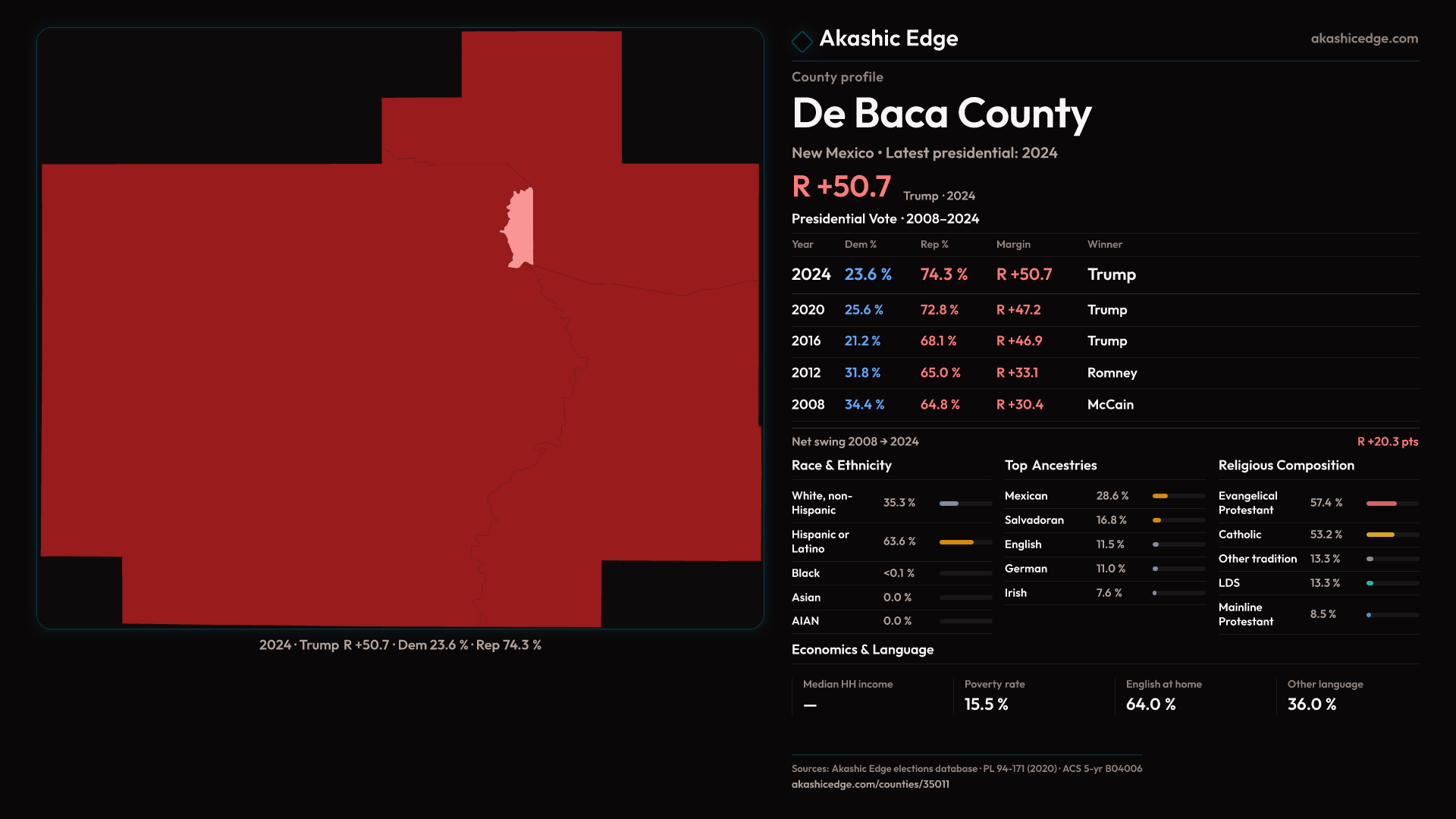Shifted 3.5pp toward Republicans in 2024 — 27 presidential elections on record