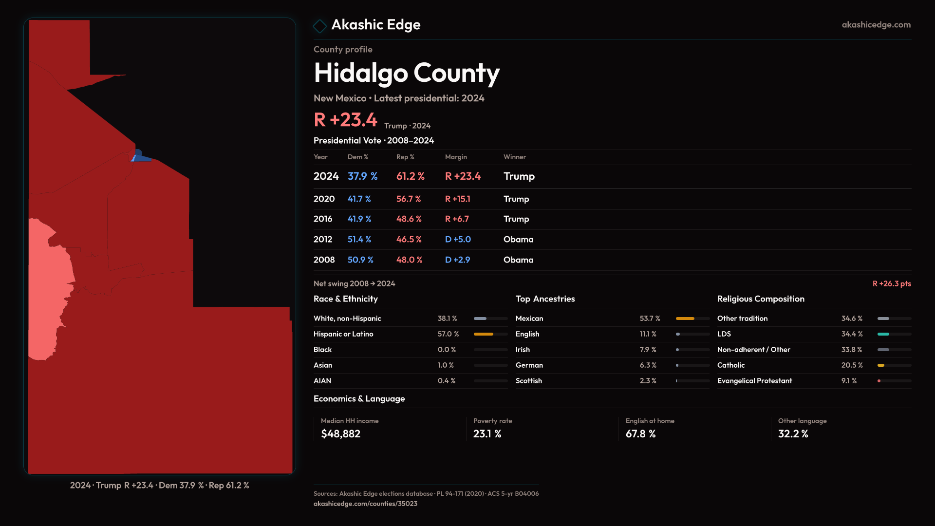 Safe Republican — shifted 8.3pp toward Republicans in 2024 — 27 presidential elections on record