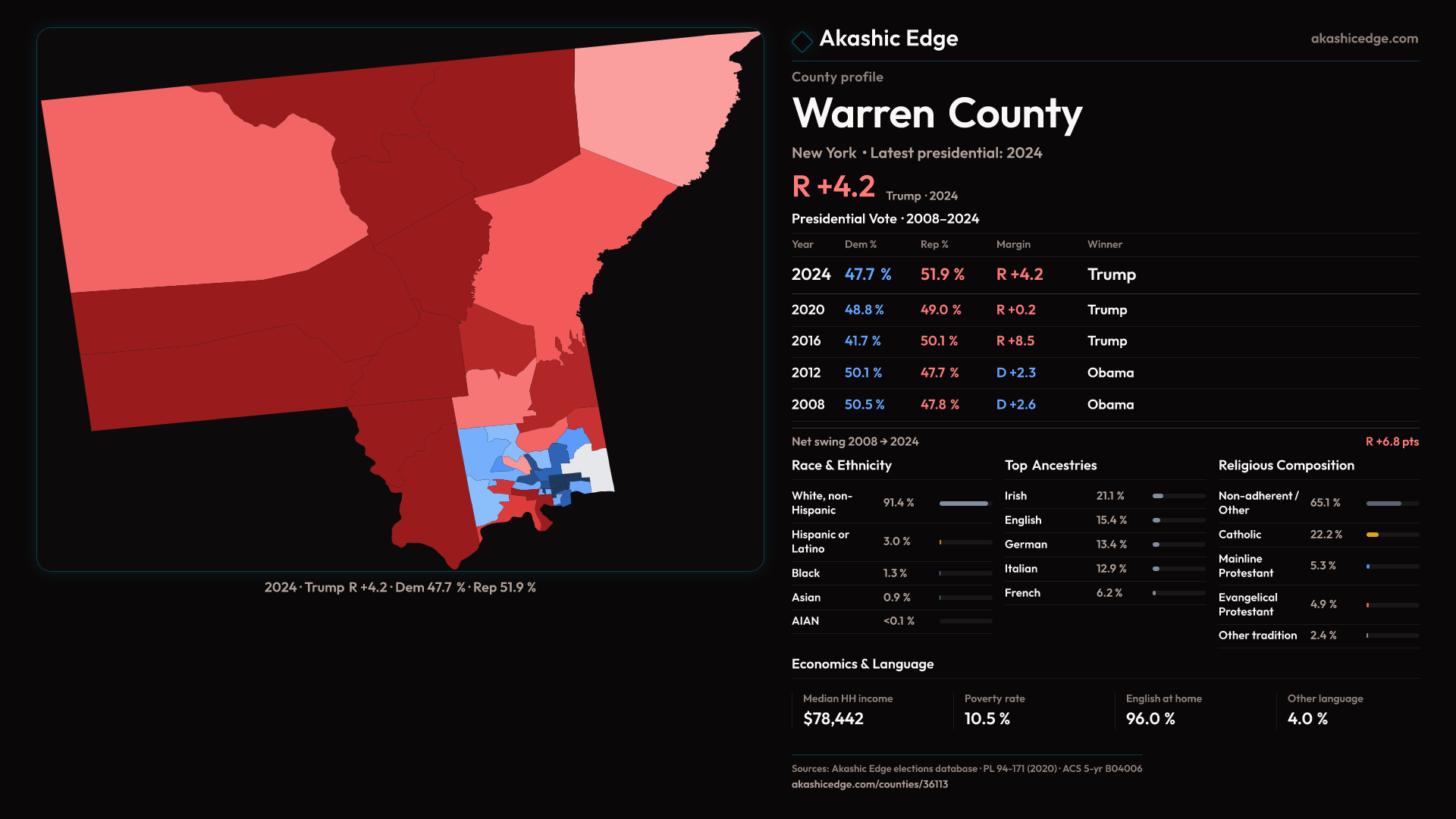 Competitive — shifted 4.0pp toward Republicans in 2024 — 40 presidential elections on record