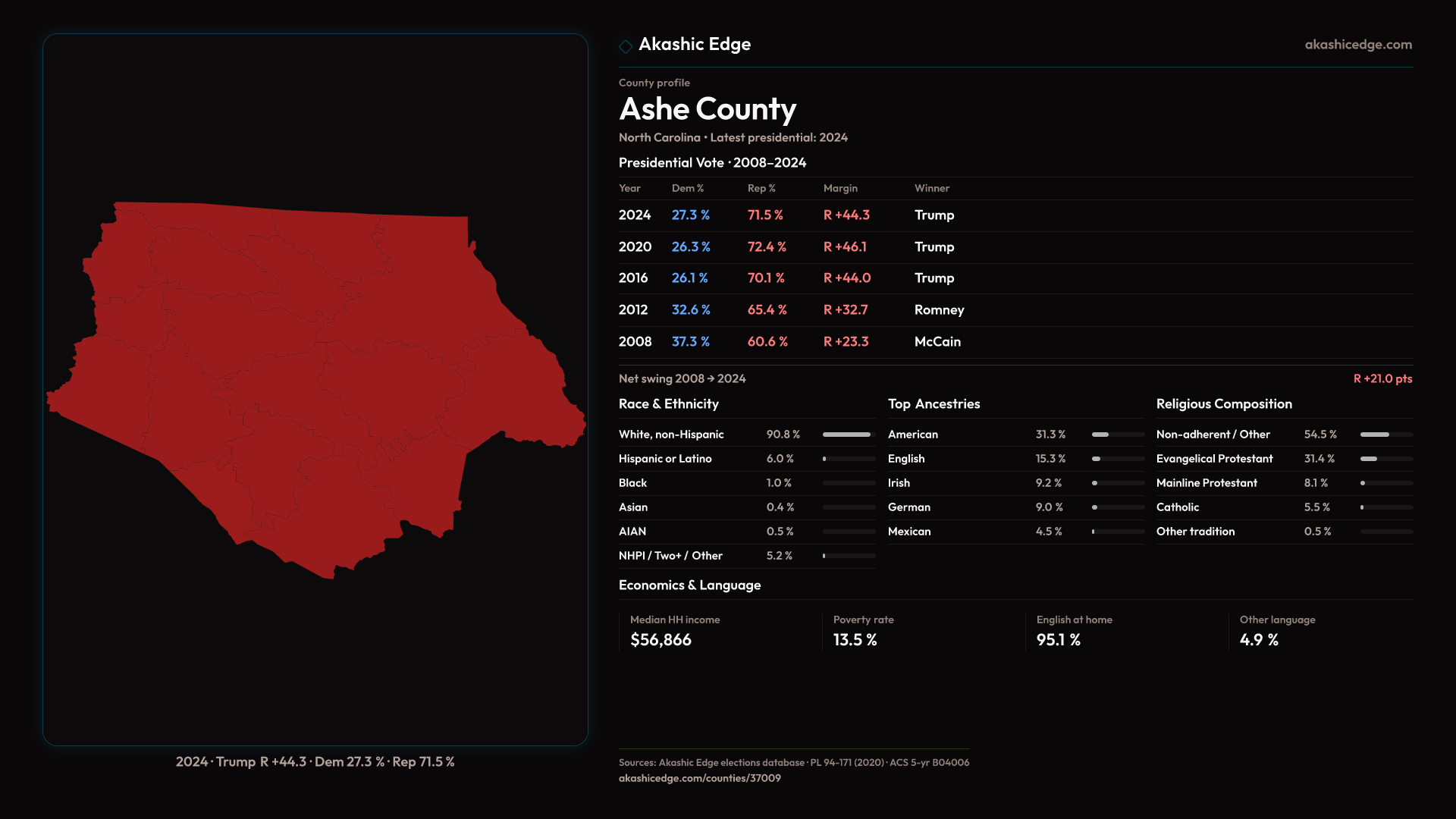 Contextual statewide polling for North Carolina. County pages stay rooted in county returns, but live statewide polling helps frame the current cycle.