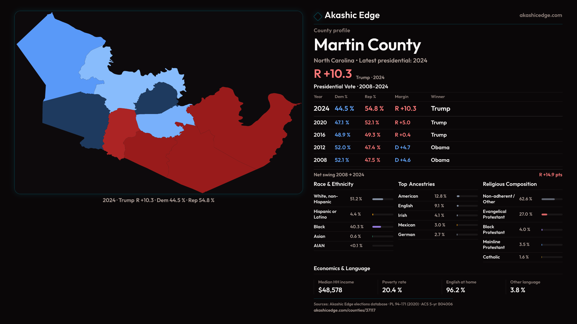 Contextual statewide polling for North Carolina. County pages stay rooted in county returns, but live statewide polling helps frame the current cycle.