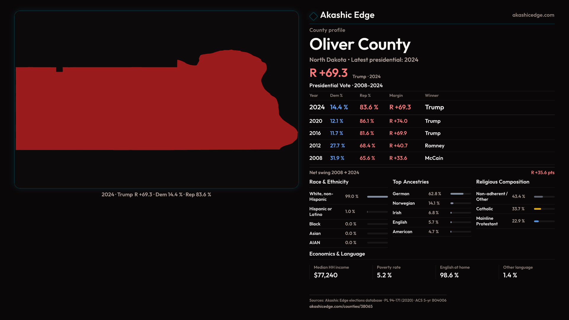 Safe Republican — shifted 4.8pp toward Democrats in 2024 — 34 presidential elections on record