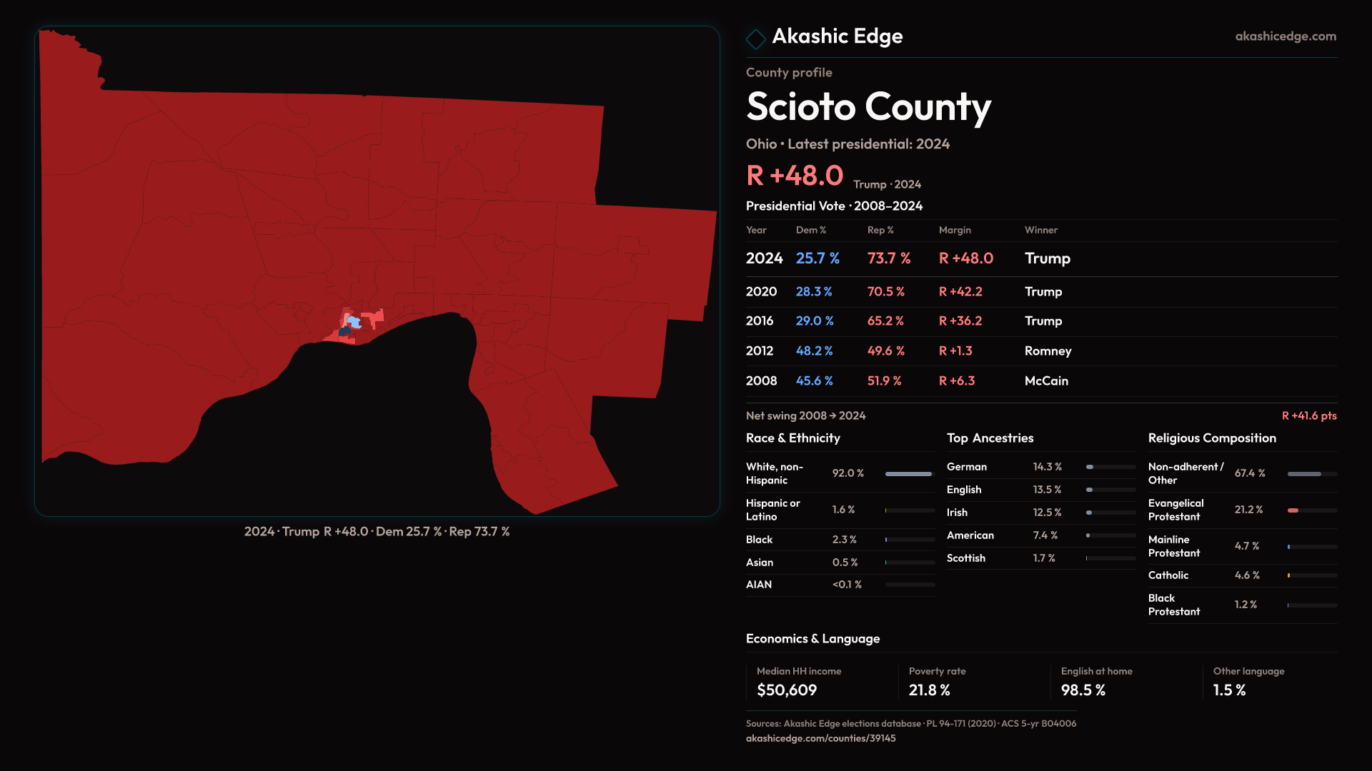 Safe Republican — shifted 5.8pp toward Republicans in 2024 — 40 presidential elections on record