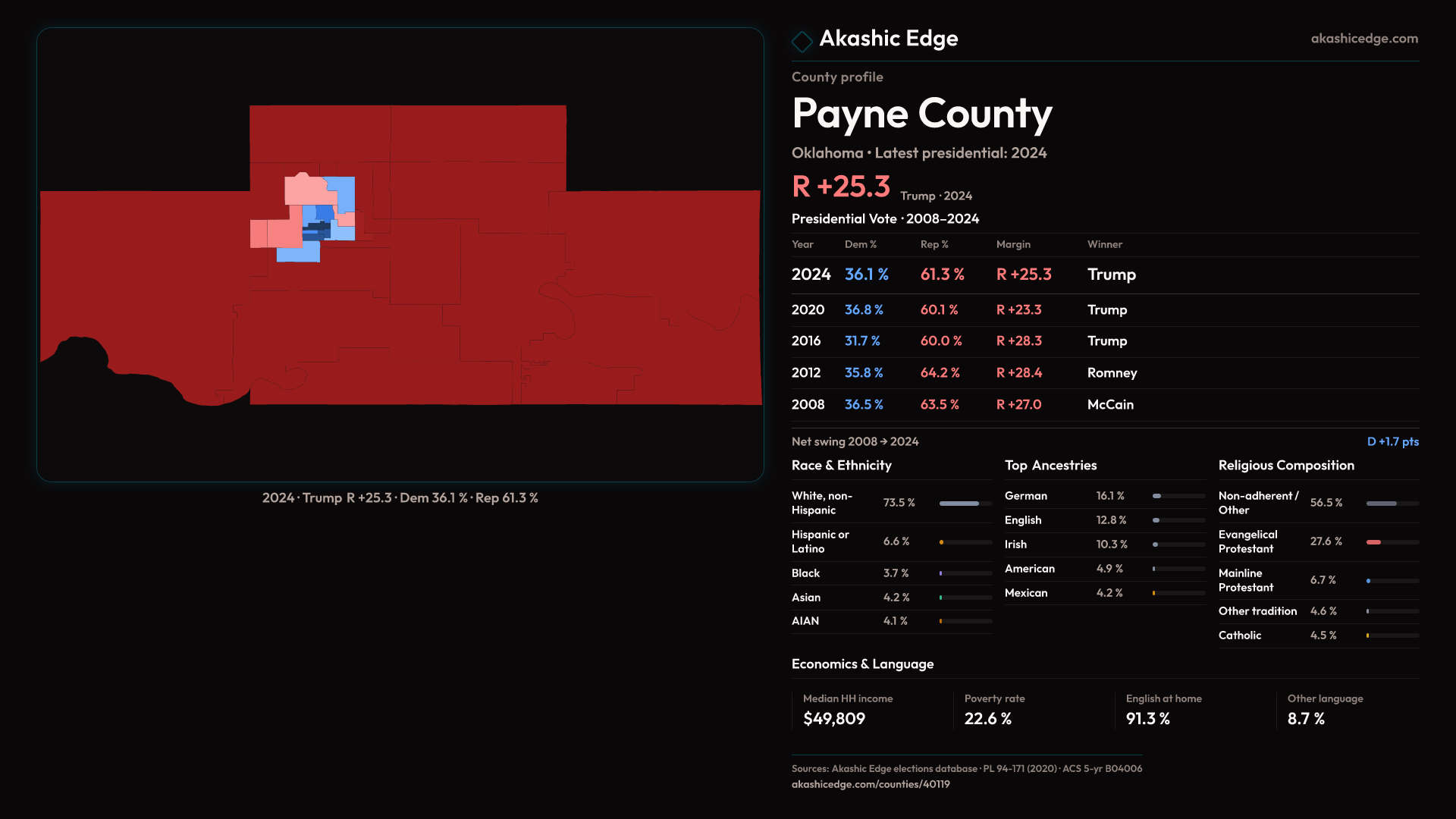 Presidential margin · 2008 → 2024