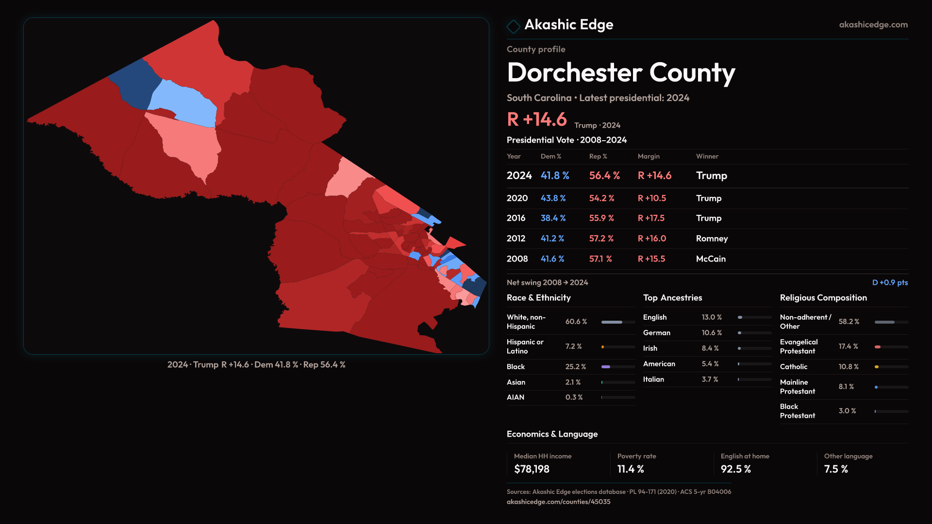 Shifted 4.1pp toward Republicans in 2024 — 32 presidential elections on record