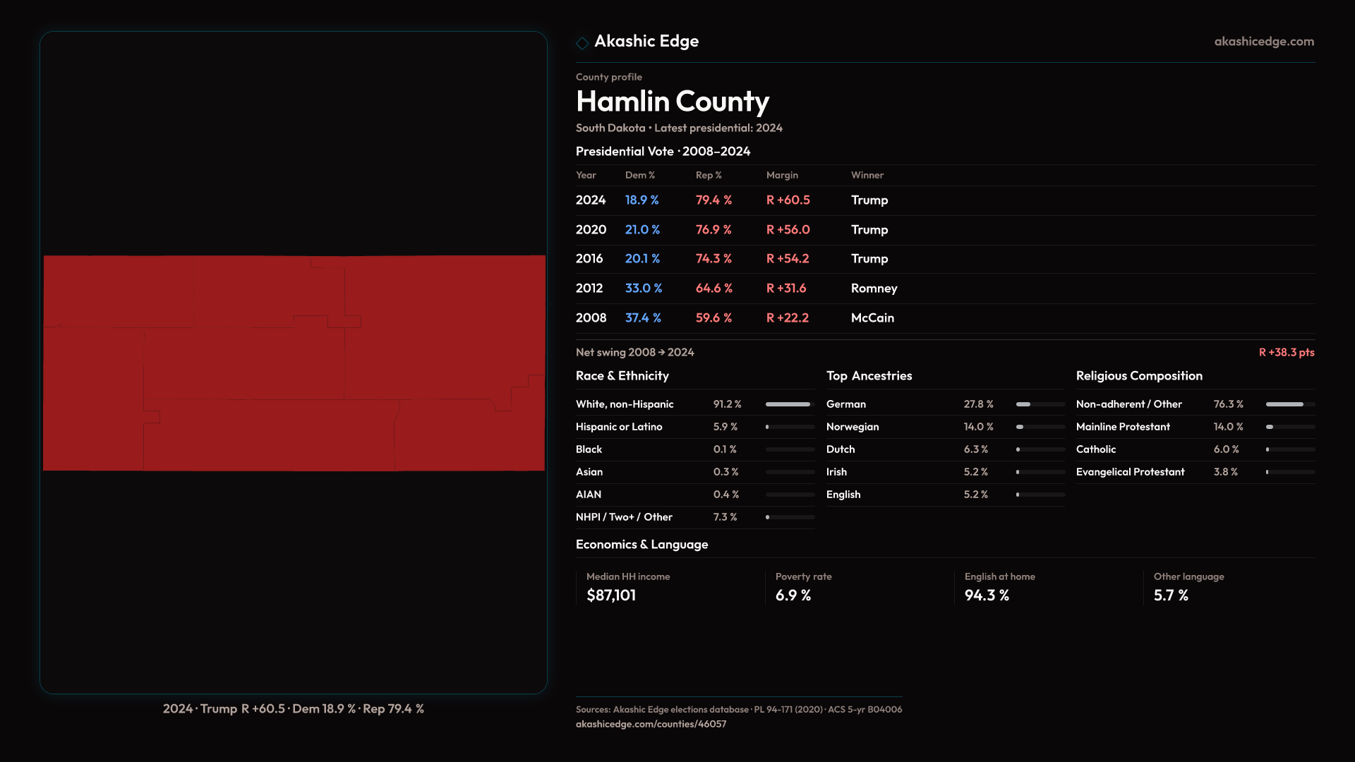 Safe Republican — shifted 4.5pp toward Republicans in 2024 — 34 presidential elections on record