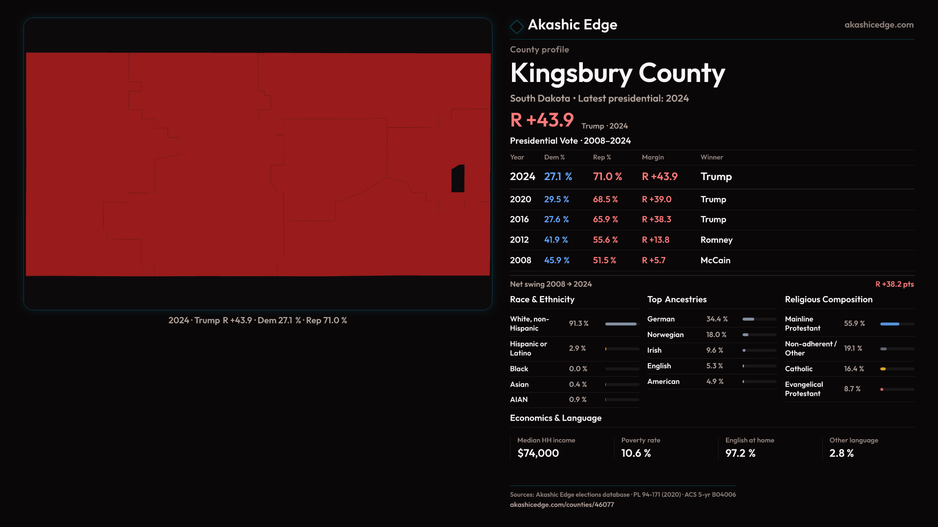 Safe Republican — shifted 4.8pp toward Republicans in 2024 — 34 presidential elections on record
