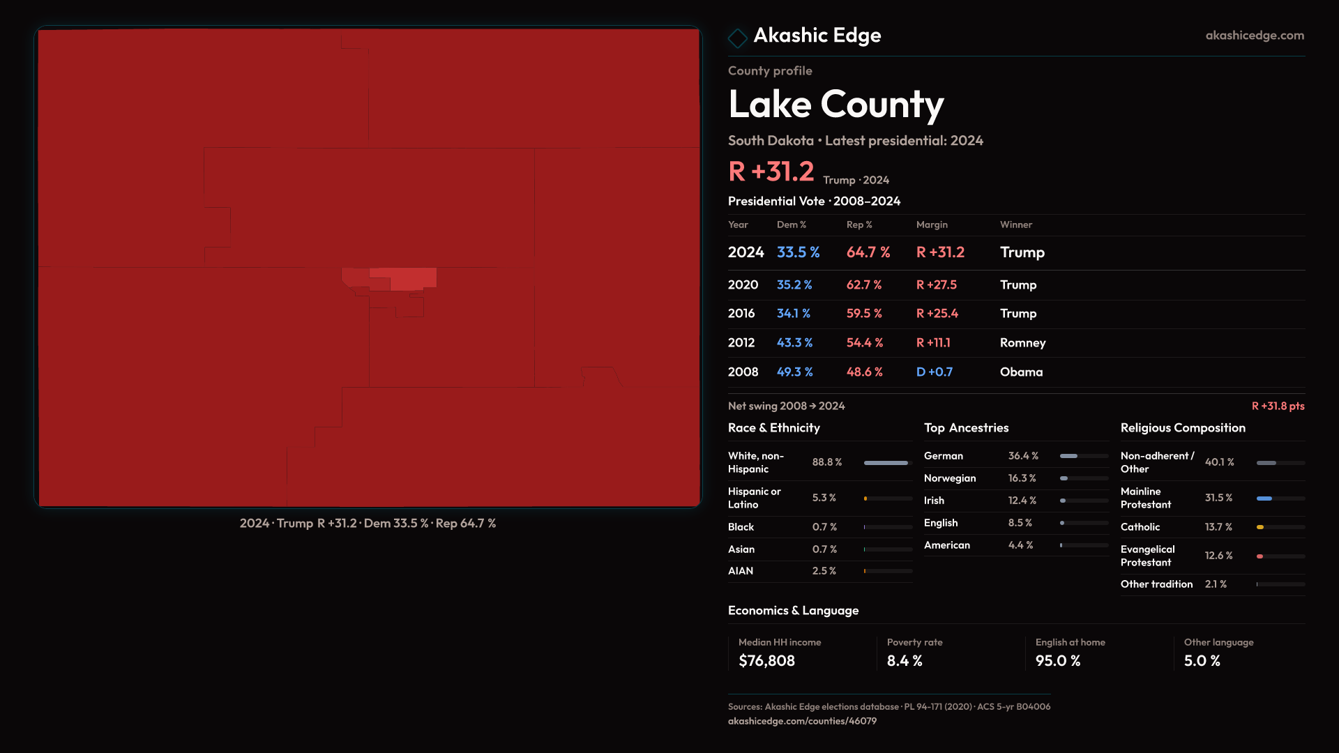 Shifted 3.7pp toward Republicans in 2024 — 34 presidential elections on record