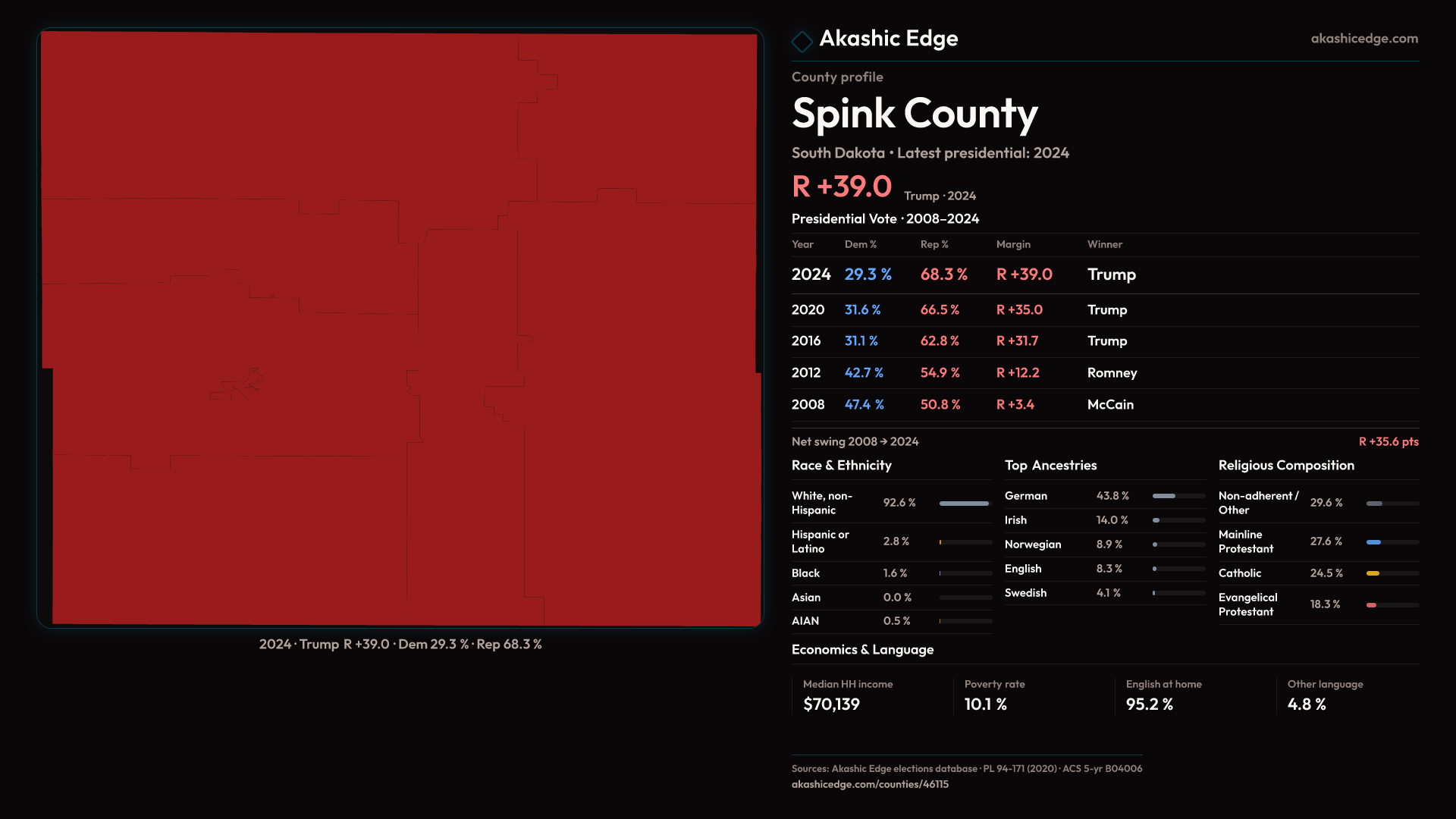 Shifted 4.0pp toward Republicans in 2024 — 34 presidential elections on record