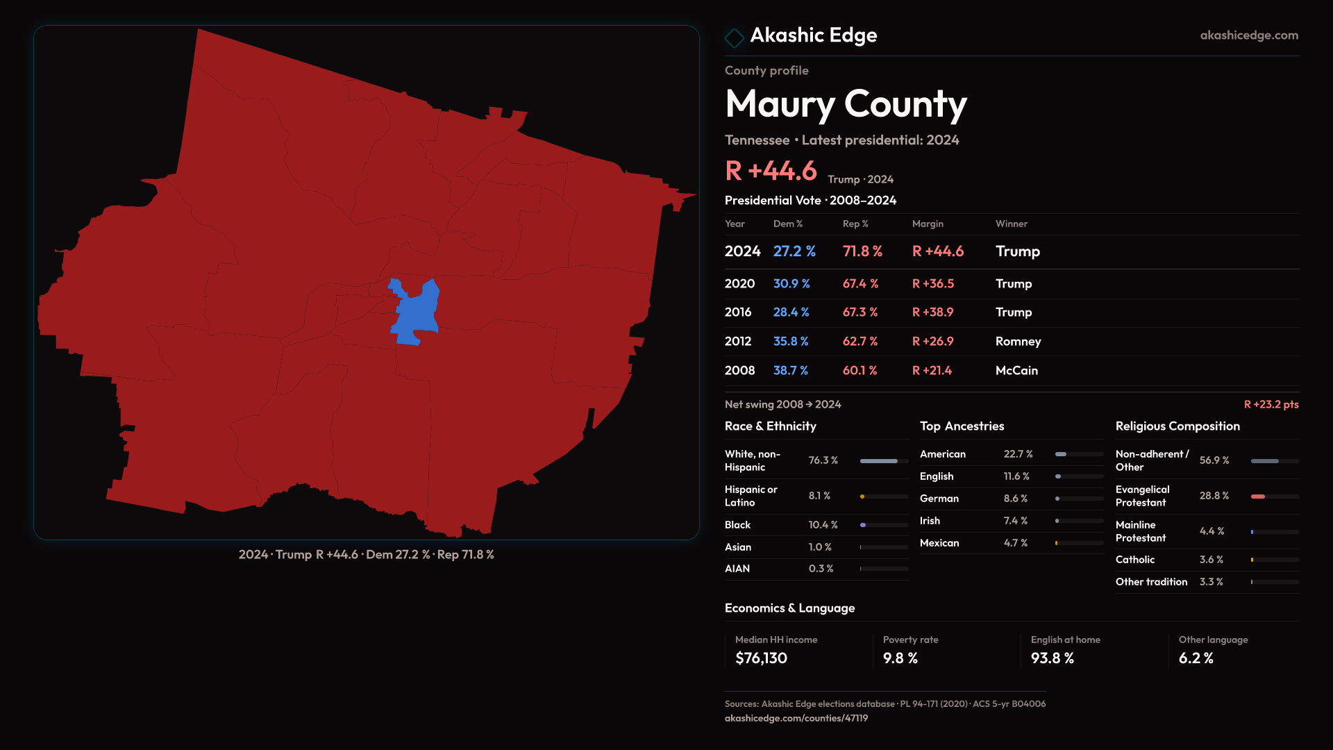Safe Republican — shifted 8.1pp toward Republicans in 2024 — 40 presidential elections on record