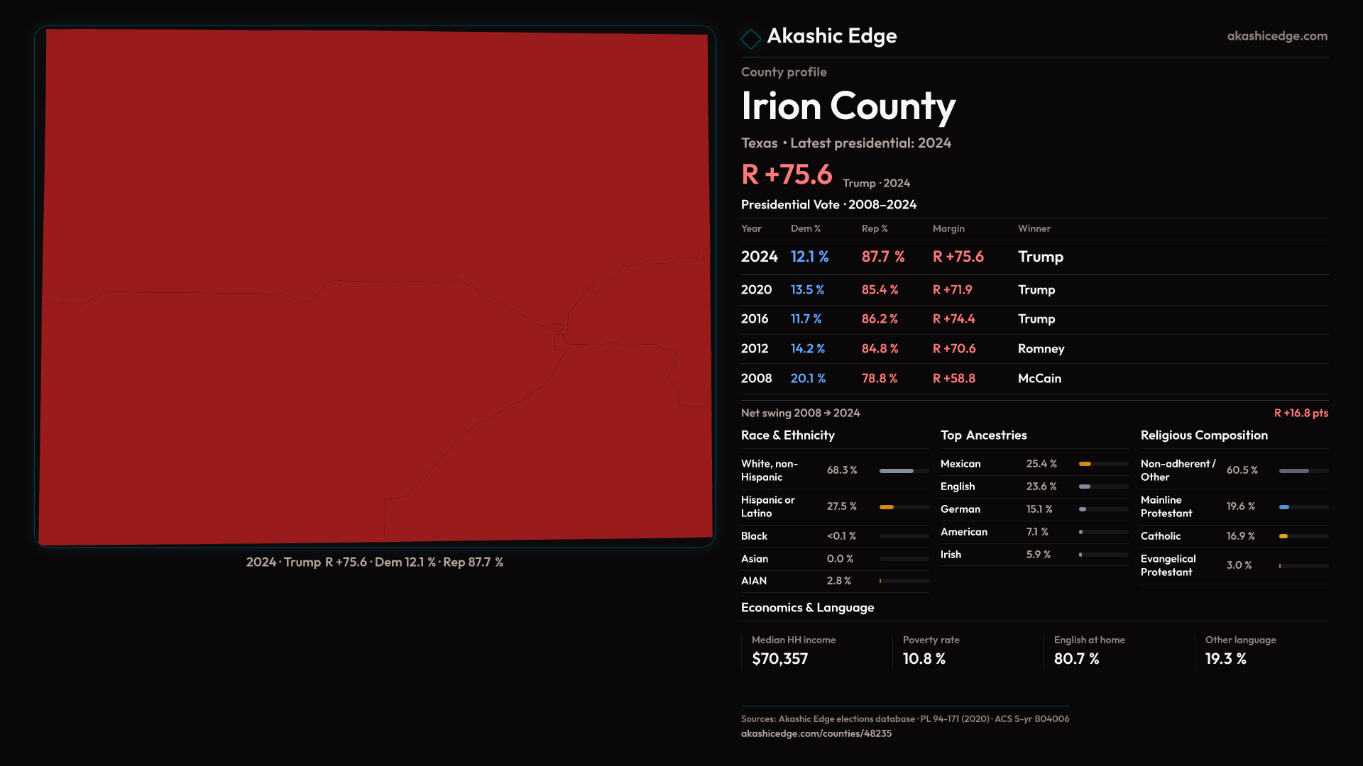 Safe Republican — shifted 3.7pp toward Republicans in 2024 — 34 presidential elections on record