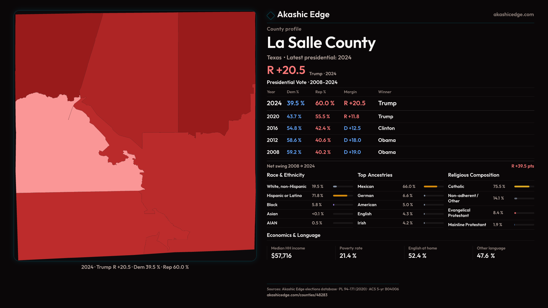 Safe Republican — shifted 8.8pp toward Republicans in 2024 — 36 presidential elections on record