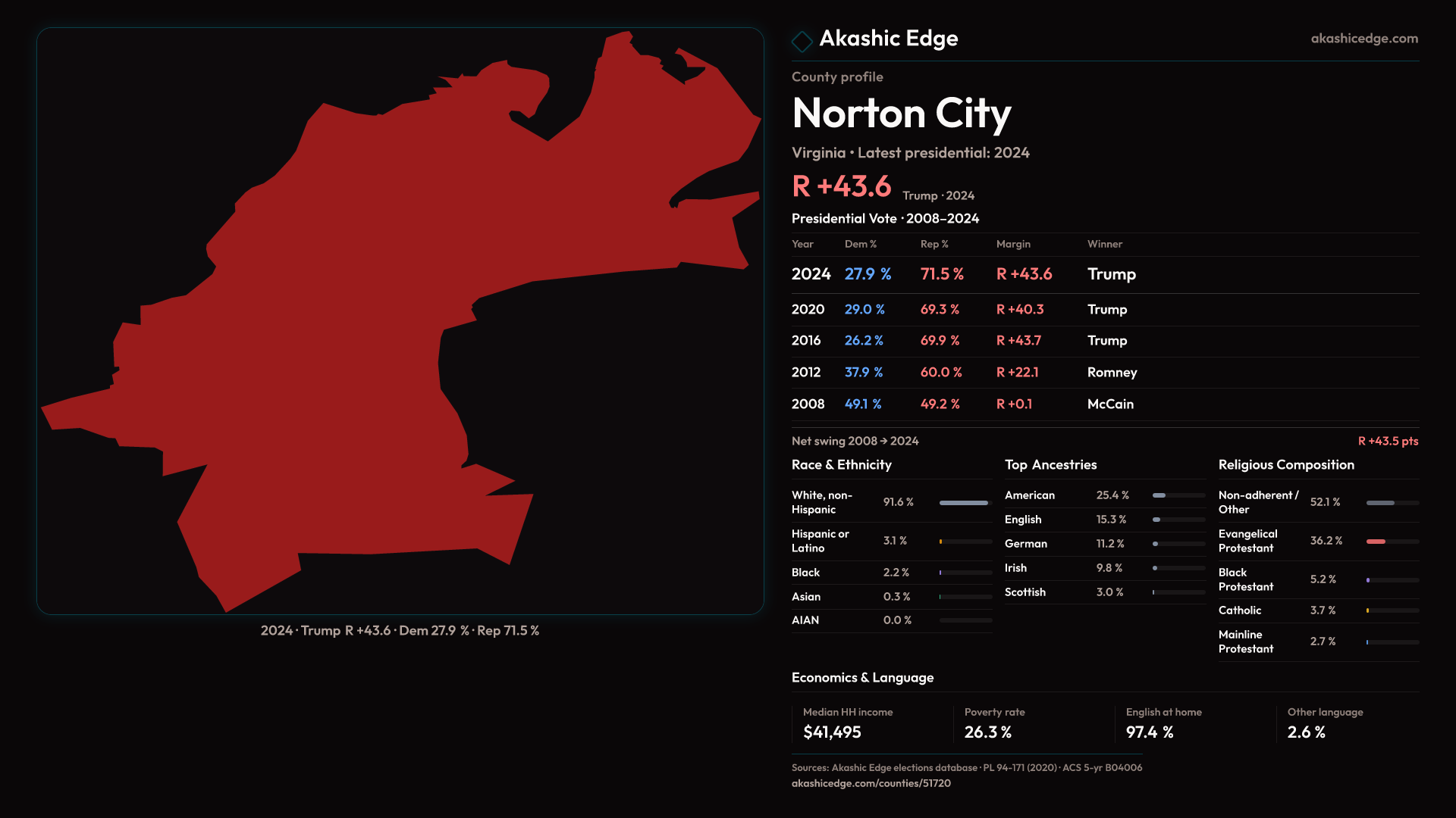 Safe Republican — shifted 3.3pp toward Republicans in 2024 — 18 presidential elections on record