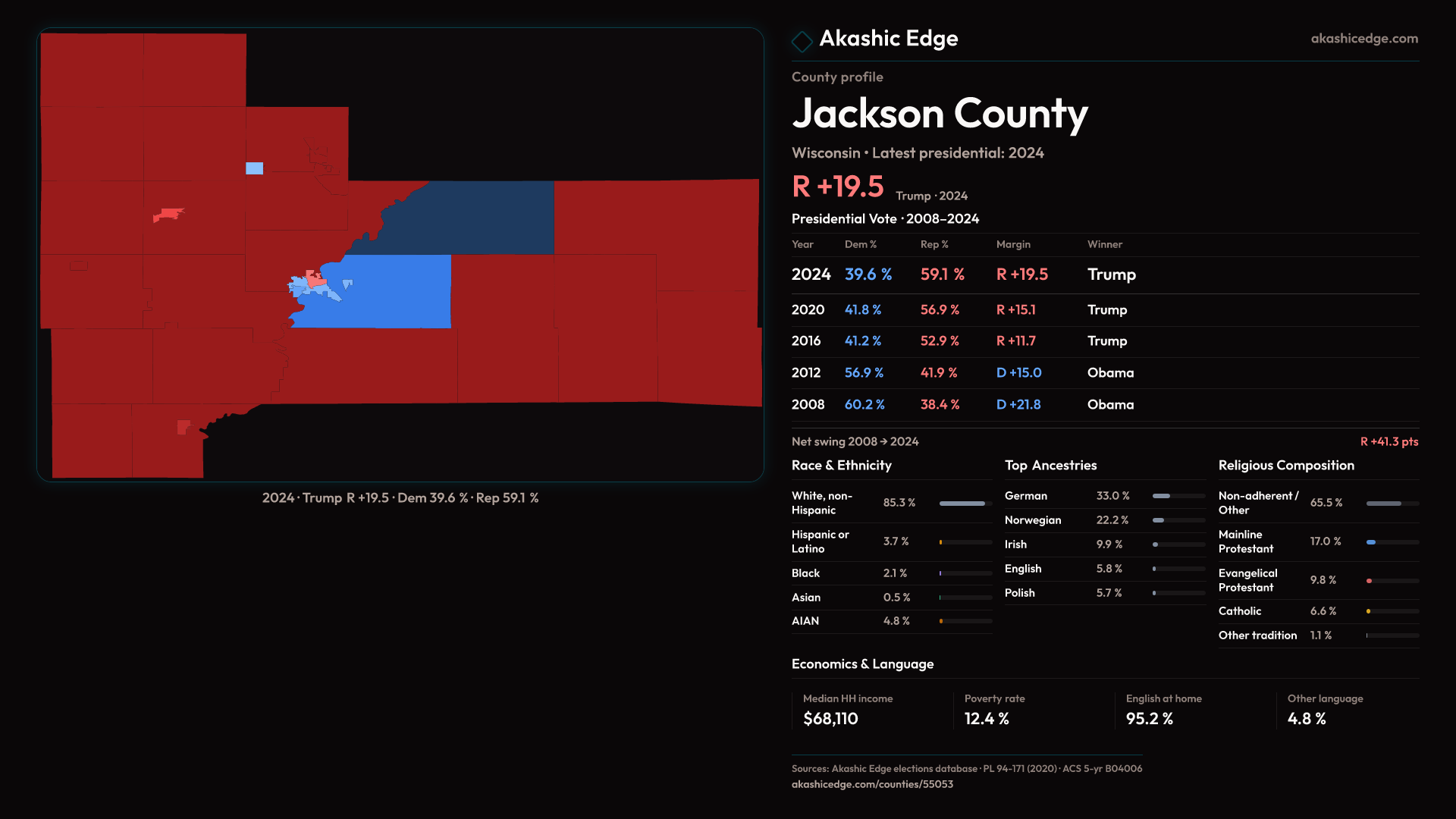 Safe Republican — shifted 4.4pp toward Republicans in 2024 — 40 presidential elections on record