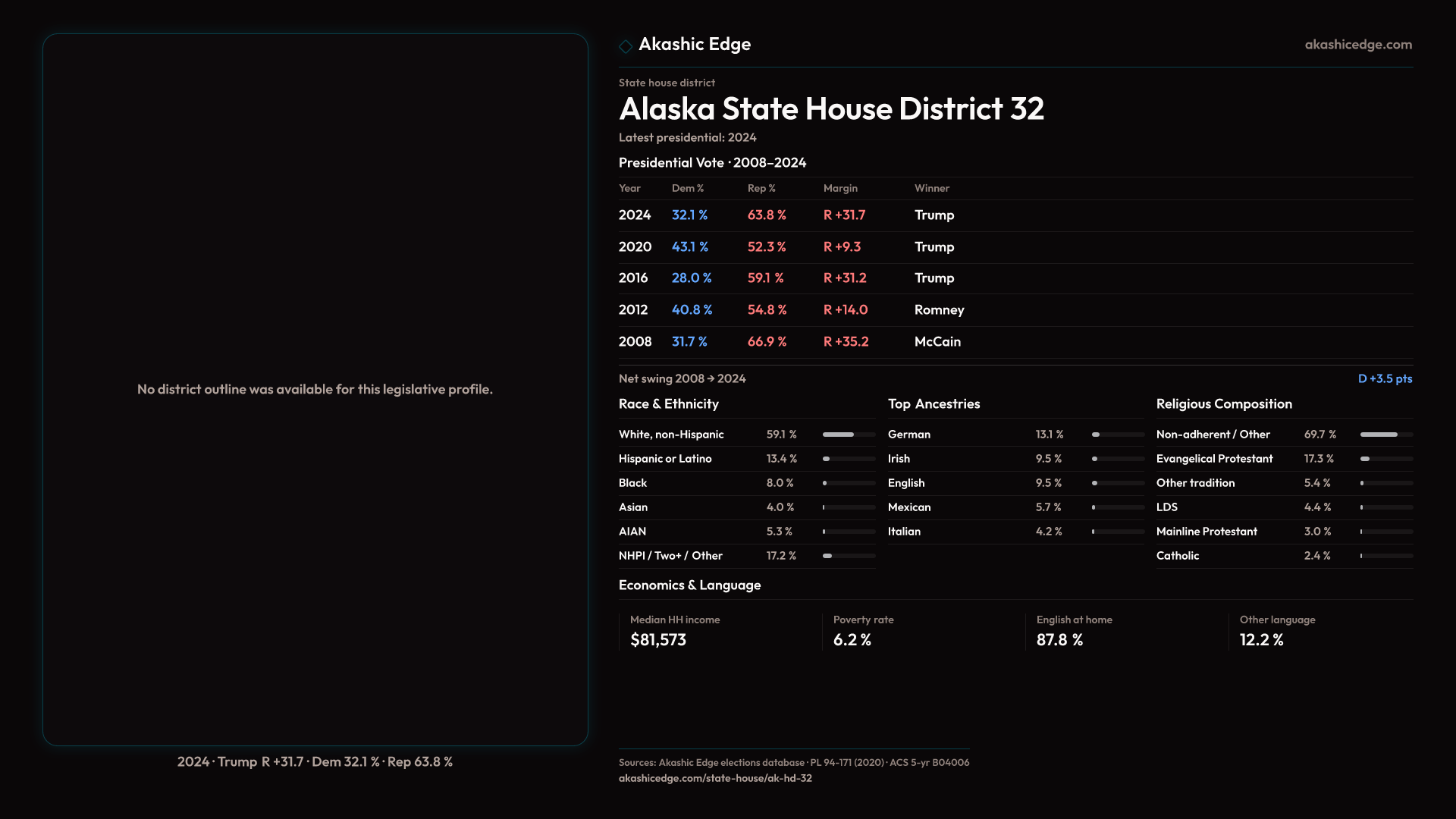 Who lives in Alaska State House District 32? 18,522 residents as of the 2020 Census.