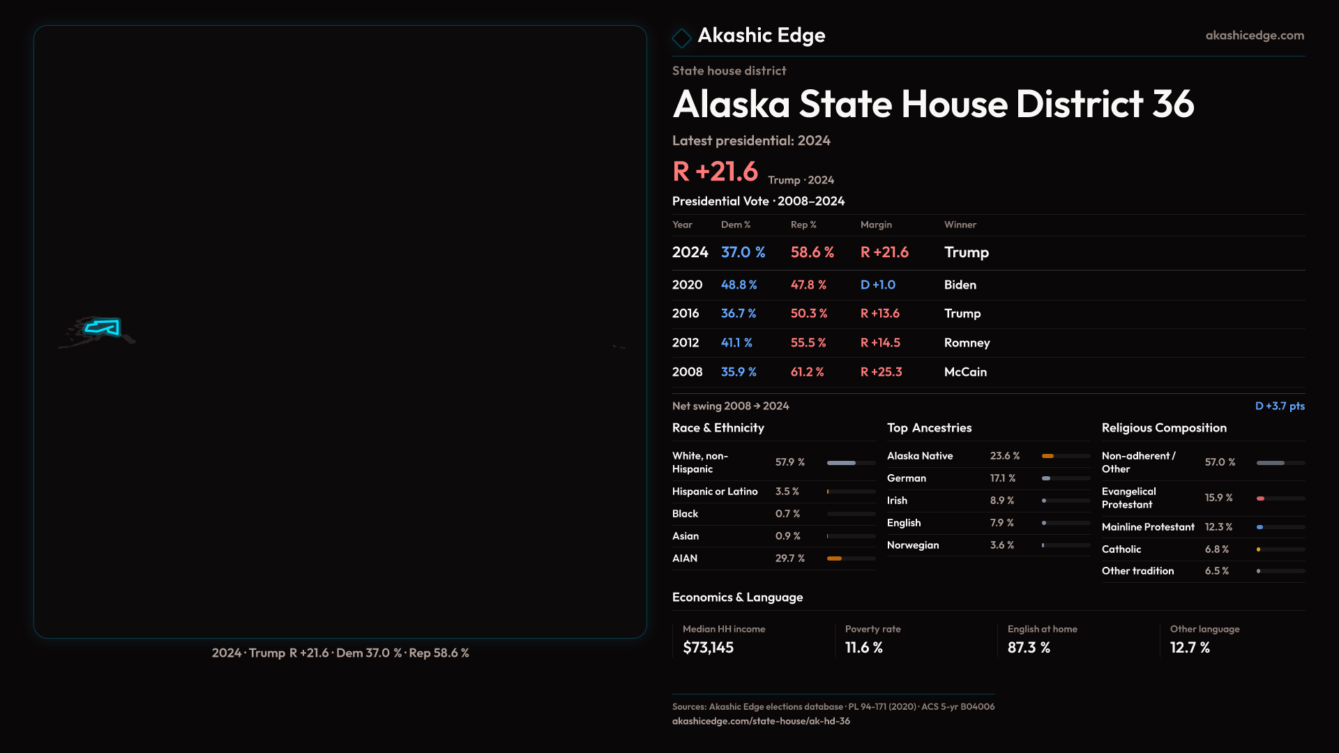 Who lives in Alaska State House District 36? 18,351 residents as of the 2020 Census.