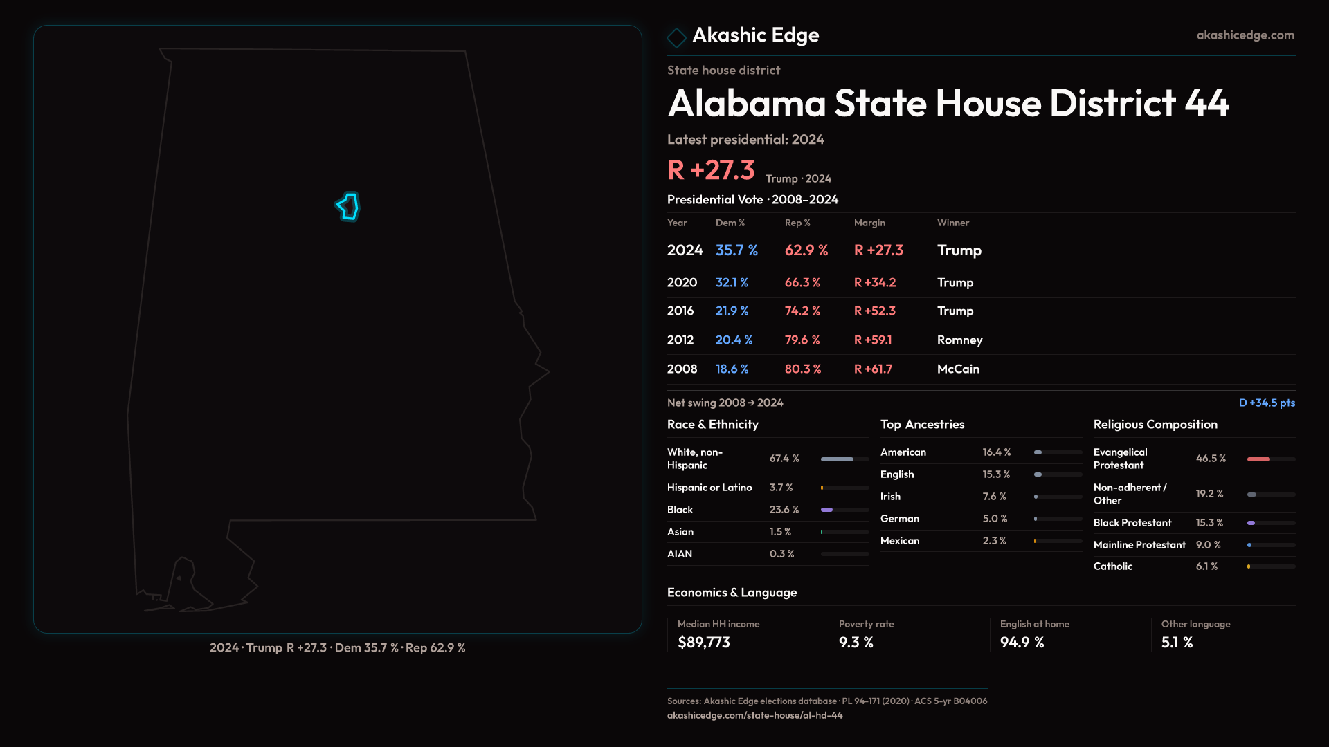 Shifted 6.9pp toward Democrats in 2024 — 50K residents