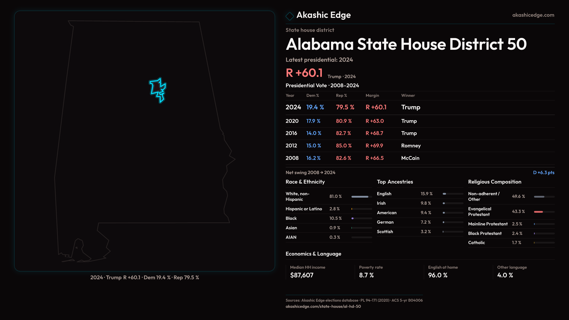 Who lives in Alabama State House District 50? 48,179 residents as of the 2020 Census.