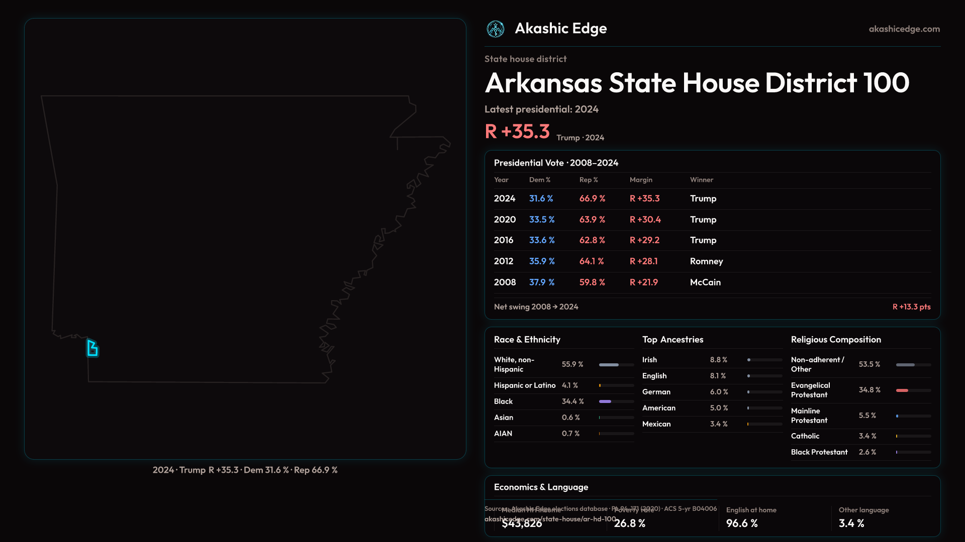 Read this geography's profile in three layers: local, state (where available), and national baseline.