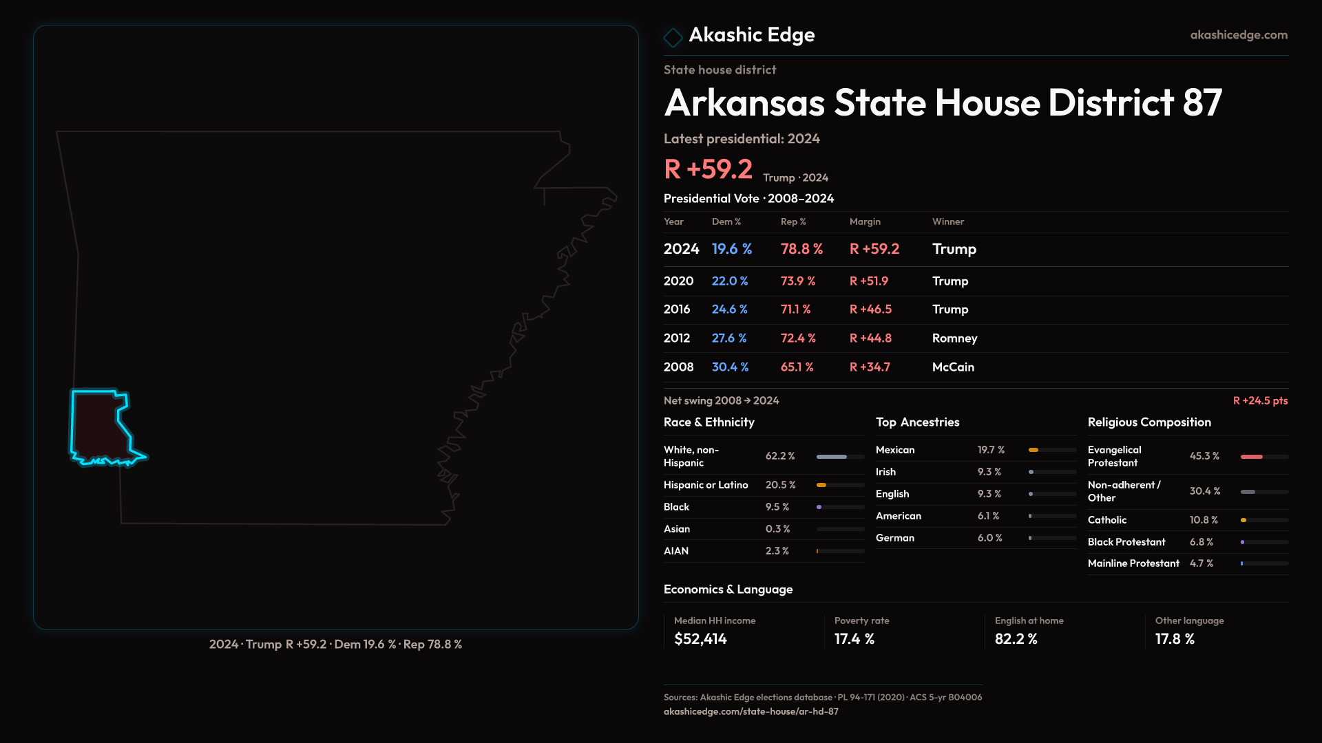 Shifted 7.3pp toward Republicans in 2024 — 29K residents