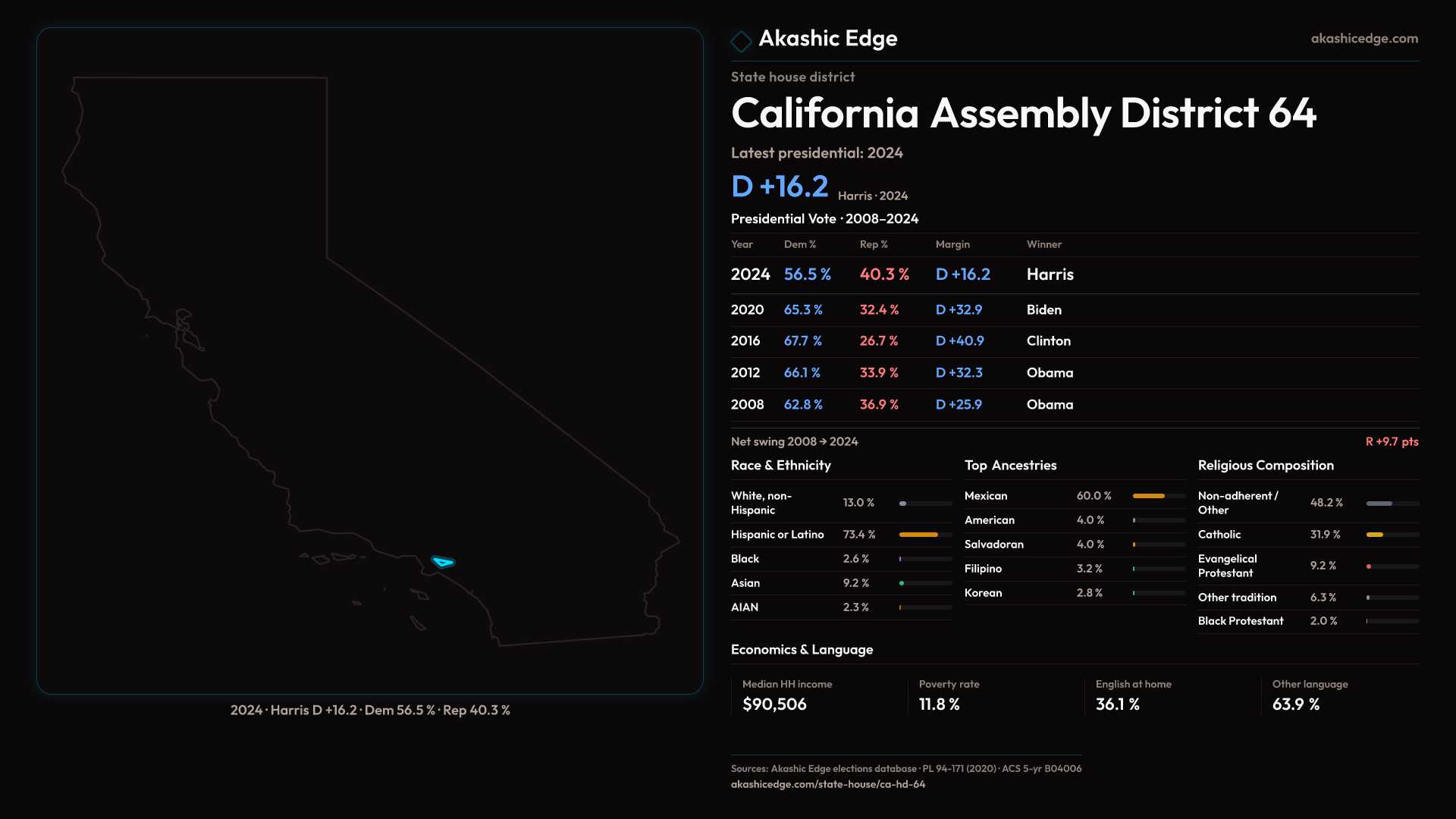 Explore CA-HD-64's political evolution with the Historian