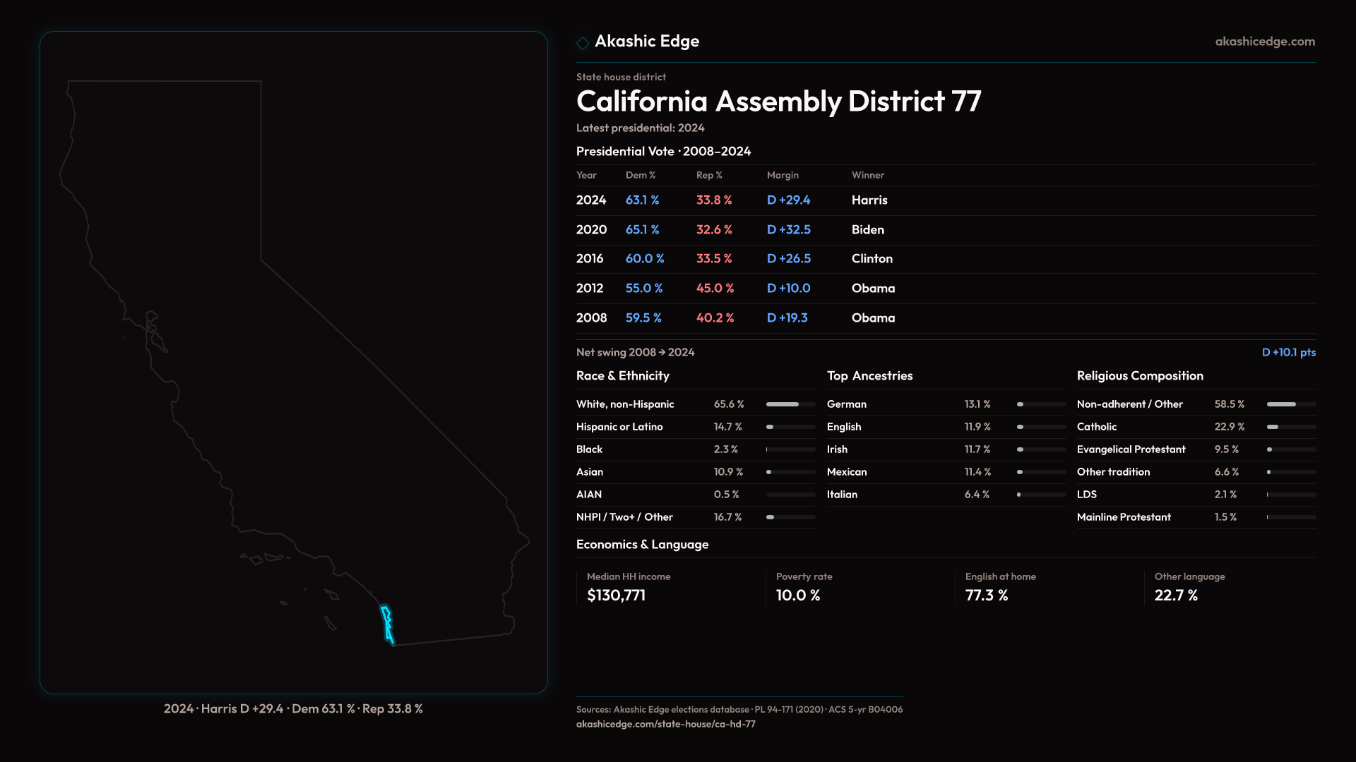 Explore CA-HD-77's political evolution with the Historian