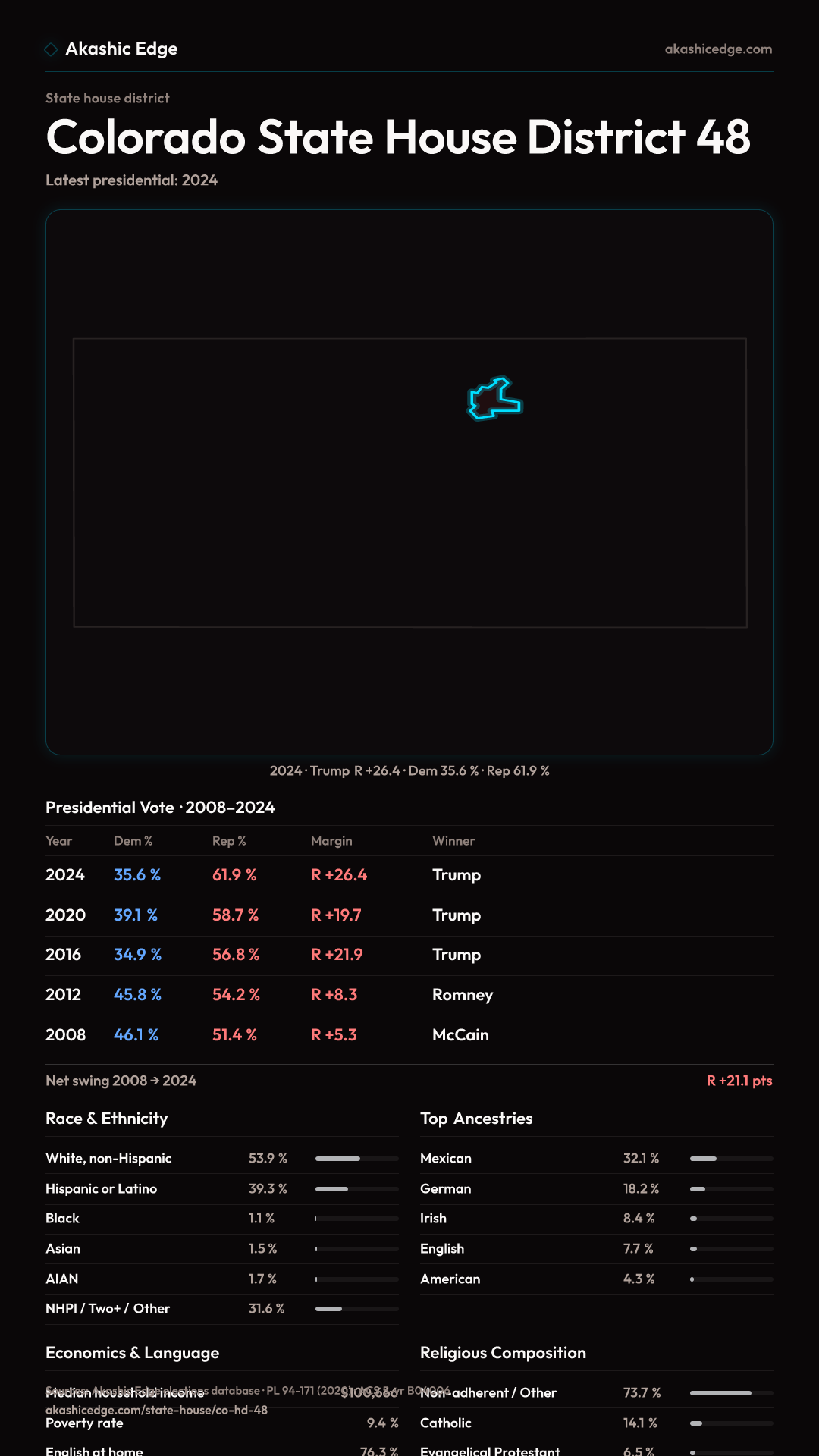 Who lives in Colorado State House District 48? 88,625 residents as of the 2020 Census.