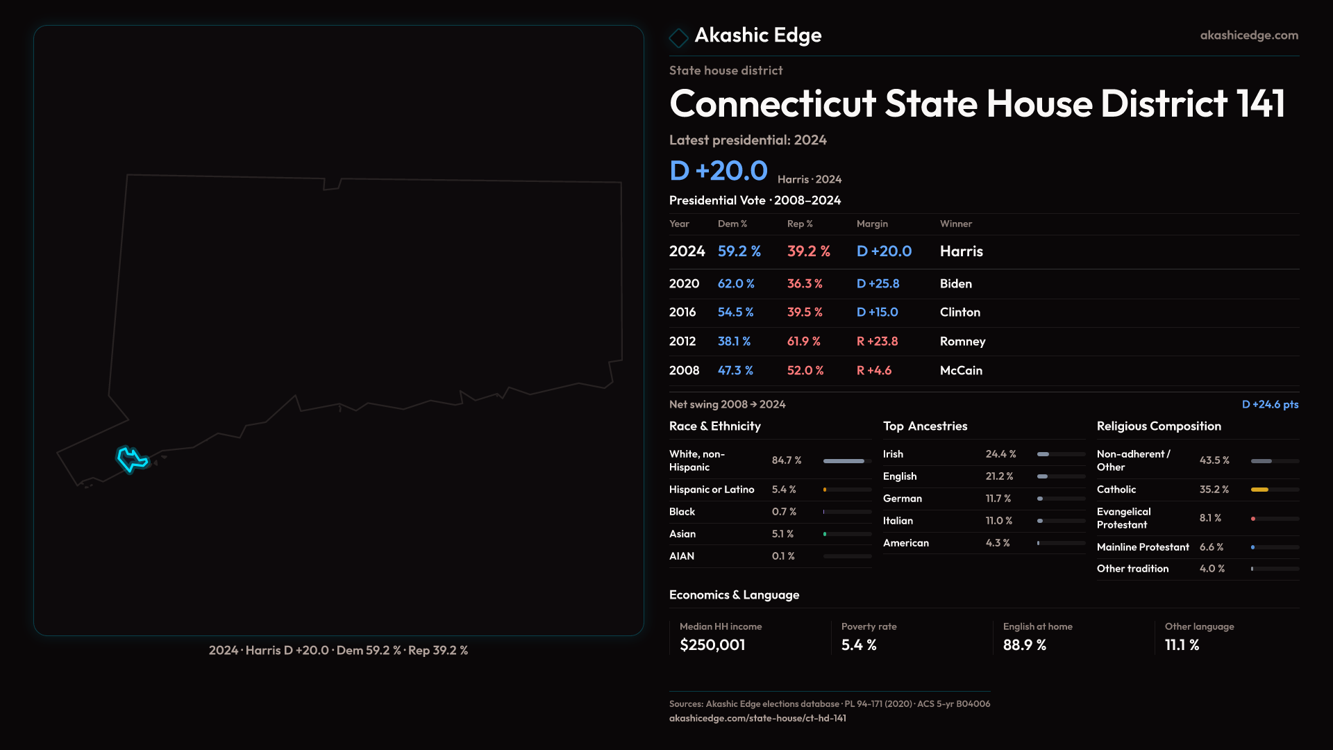 Who lives in Connecticut State House District 141? 23,472 residents as of the 2020 Census.