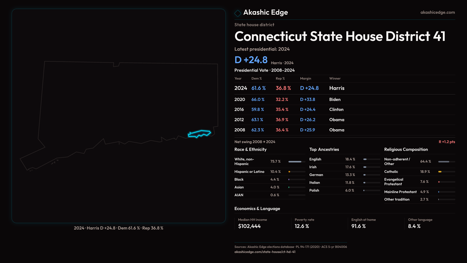 Who lives in Connecticut State House District 41? 24,214 residents as of the 2020 Census.