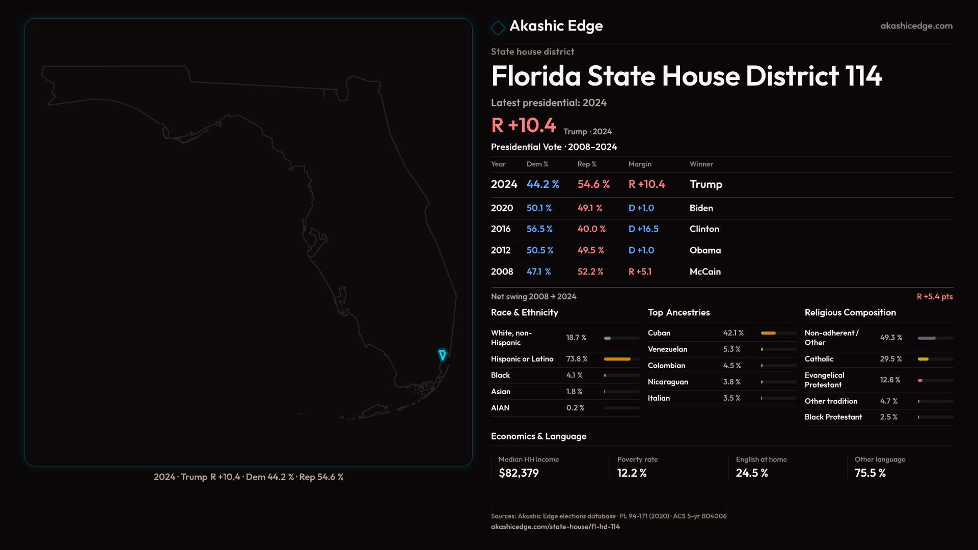 Who lives in Florida State House District 114? 181,962 residents as of the 2020 Census.