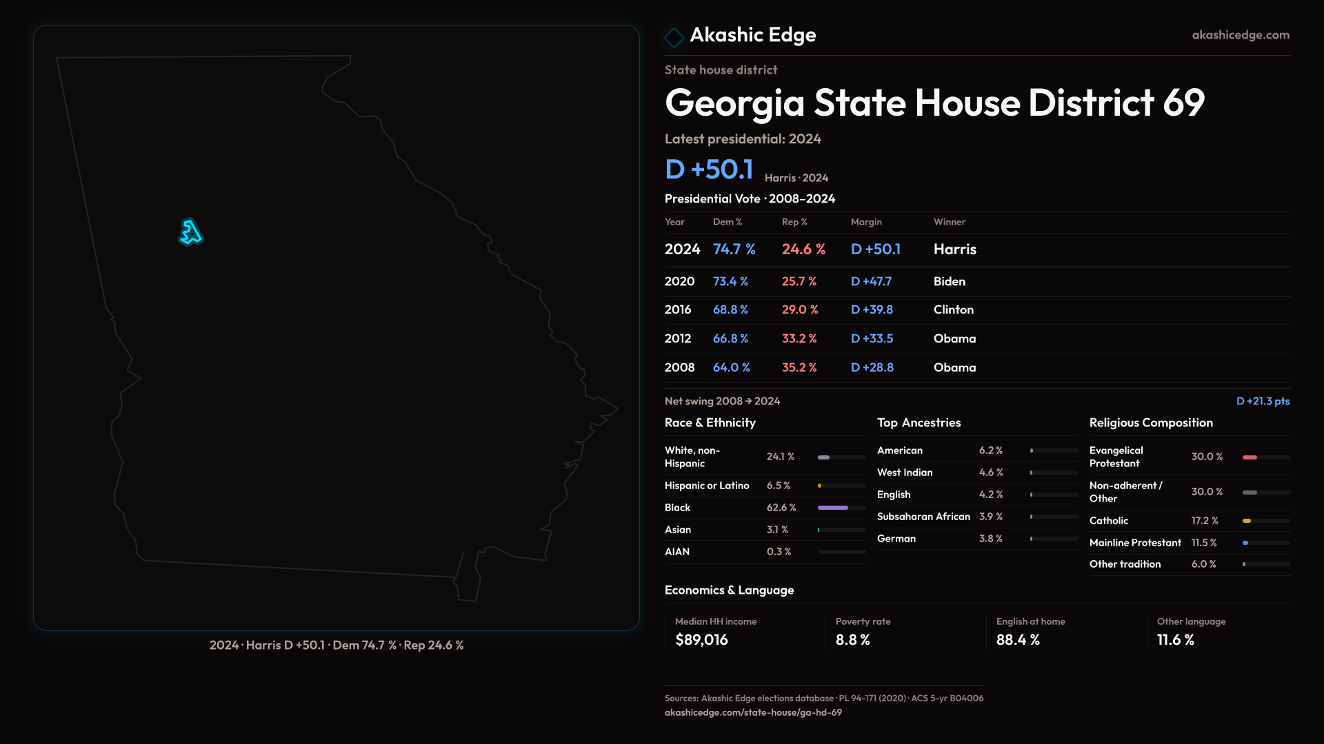 Who lives in Georgia State House District 69? 58,679 residents as of the 2020 Census.
