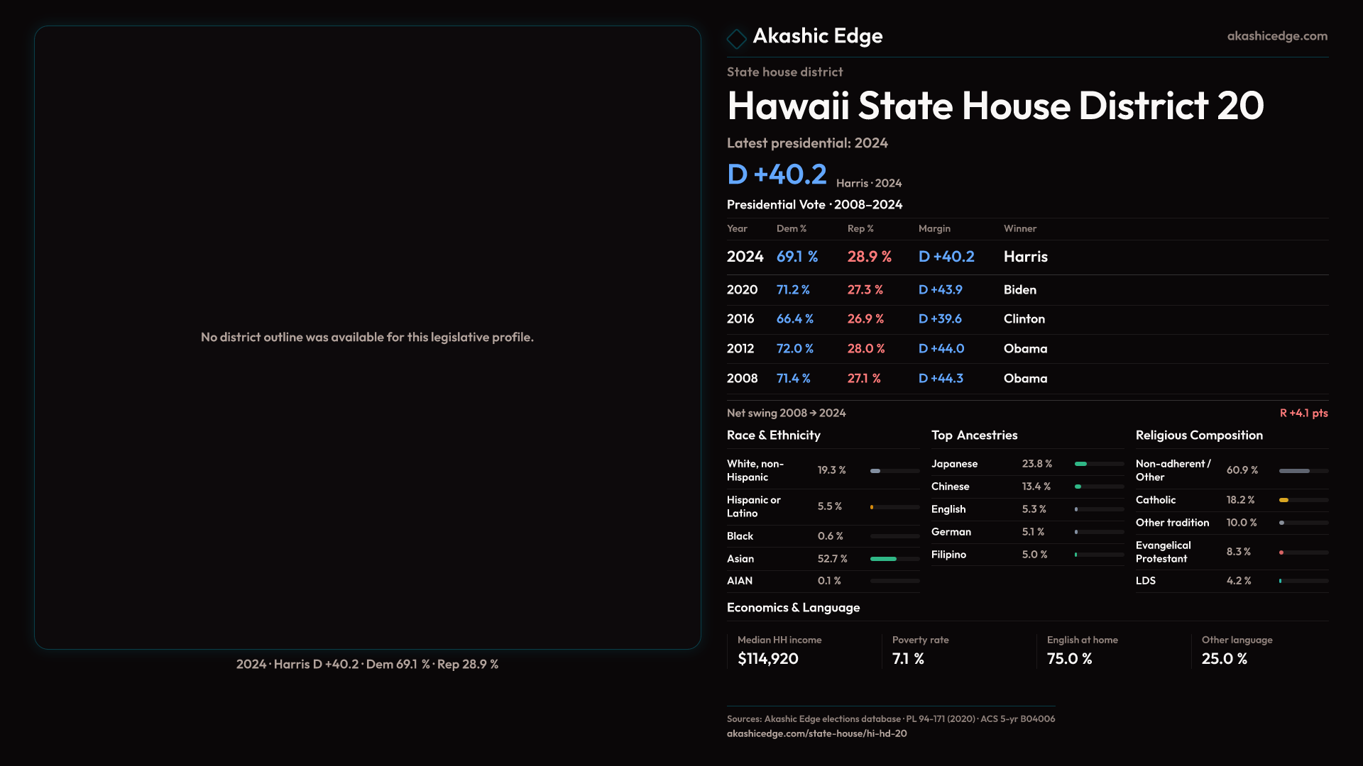 Who lives in Hawaii State House District 20? 27,027 residents as of the 2020 Census.