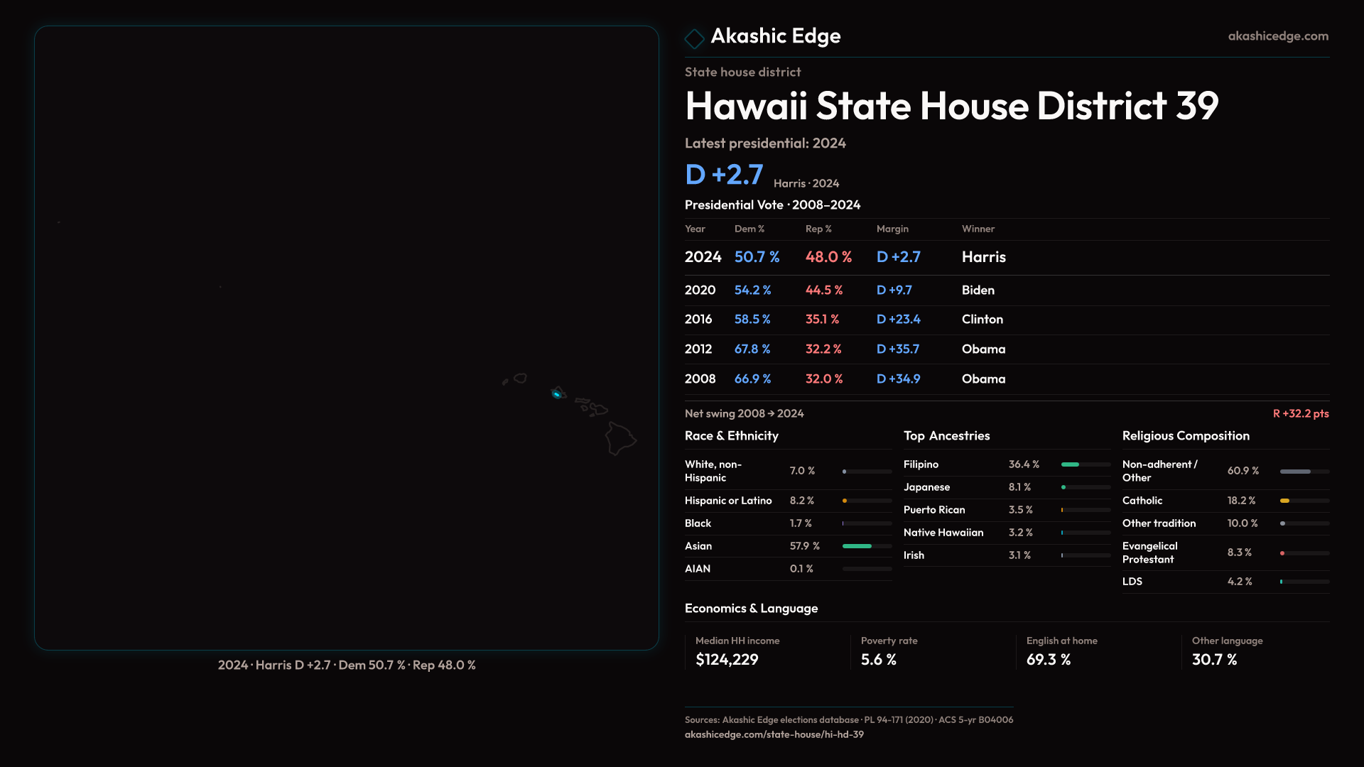 Who lives in Hawaii State House District 39? 28,339 residents as of the 2020 Census.