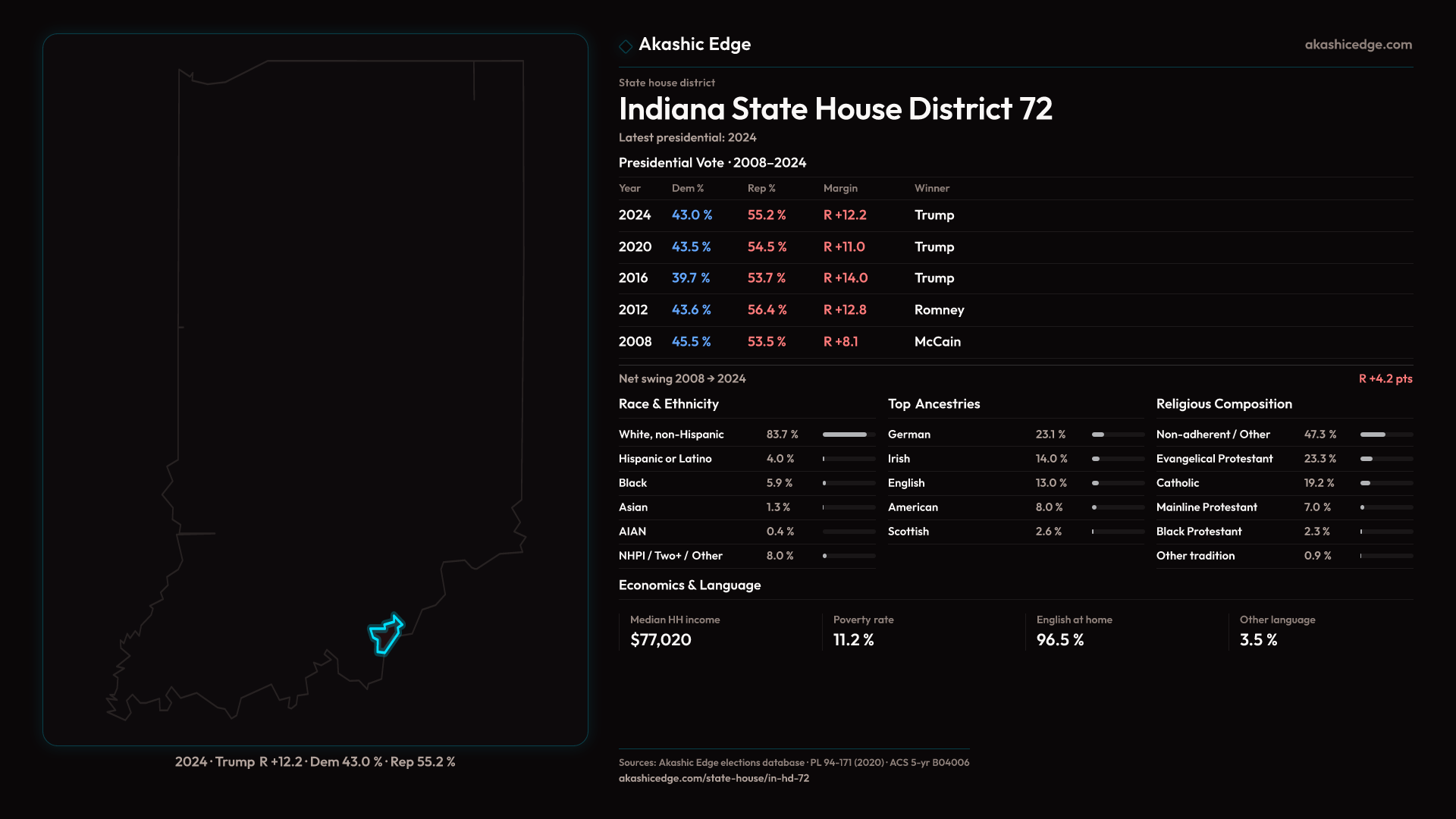 Read this geography's profile in three layers: local, state (where available), and national baseline.