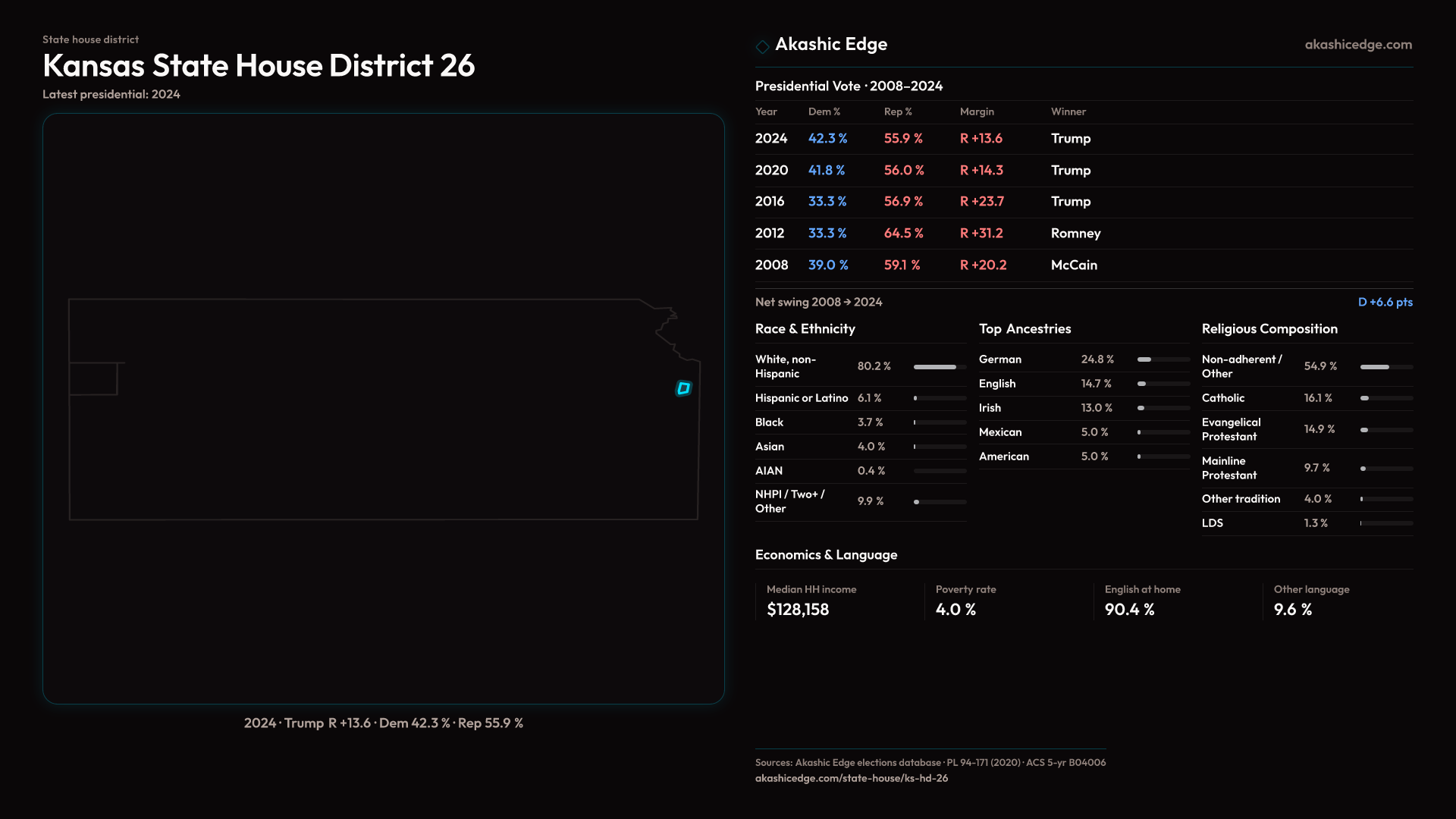 Who lives in Kansas State House District 26? 23,538 residents as of the 2020 Census.